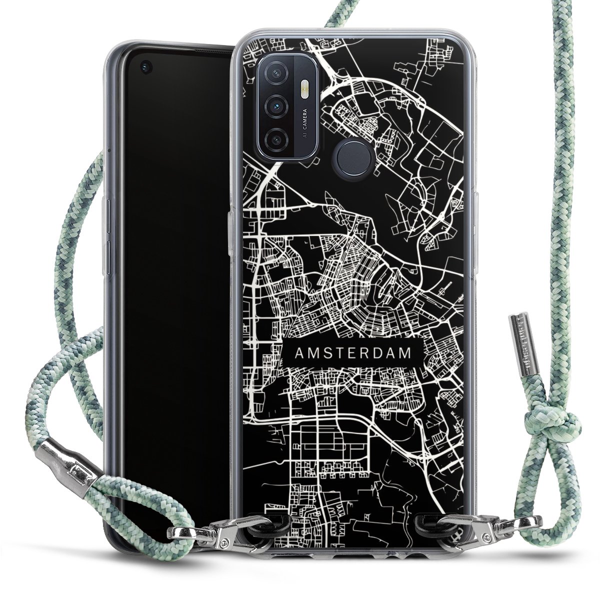 The flexible case is made from a highquality TPU material (thermoplastic Polyurethan). Thanks to its longlasting and break resistant characterisitcs, the case is flexible yet consistent in form and has a great grip and feel. The textile strap made from Polyester gives a chic yet casual accent allowing you to carry your phone like a bag or necklace - a practical gadget perfect for your next adventure. The textile strap is about 1.70 meters long and the length can easily be adjusted through the knots. Our Carry Case is available in Colourful, Mint-Camouflage, Very-Berry, Sahara-Sand and Sparkling-Neon. The ends of the textile strap are covered with metallic end caps to protect them against fraying.