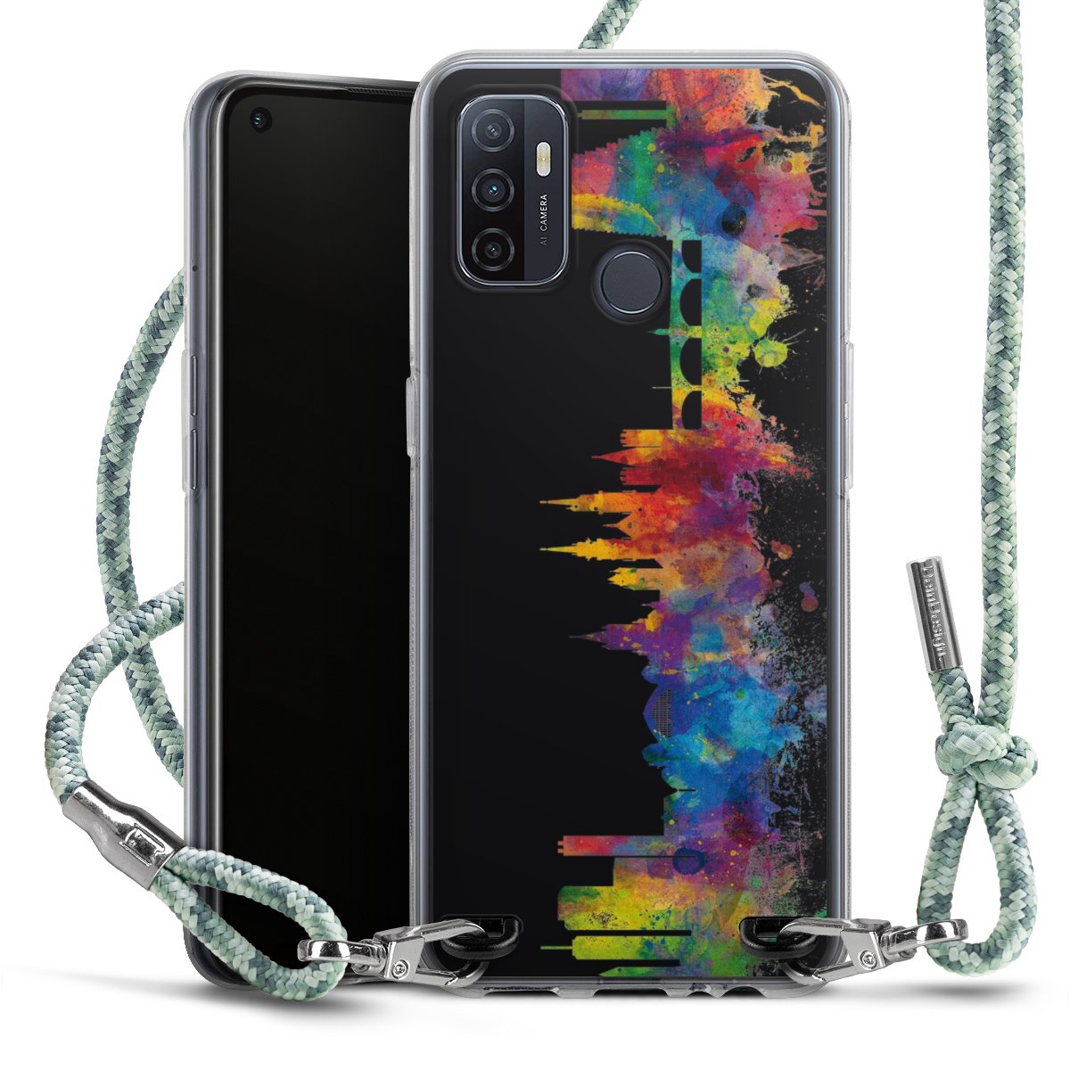 The flexible case is made from a highquality TPU material (thermoplastic Polyurethan). Thanks to its longlasting and break resistant characterisitcs, the case is flexible yet consistent in form and has a great grip and feel. The textile strap made from Polyester gives a chic yet casual accent allowing you to carry your phone like a bag or necklace - a practical gadget perfect for your next adventure. The textile strap is about 1.70 meters long and the length can easily be adjusted through the knots. Our Carry Case is available in Colourful, Mint-Camouflage, Very-Berry, Sahara-Sand and Sparkling-Neon. The ends of the textile strap are covered with metallic end caps to protect them against fraying.