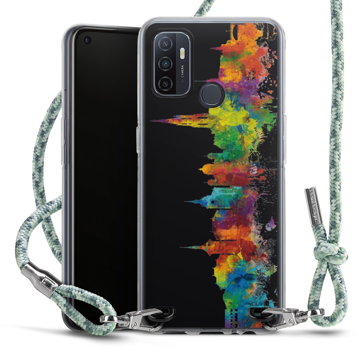 The flexible case is made from a highquality TPU material (thermoplastic Polyurethan). Thanks to its longlasting and break resistant characterisitcs, the case is flexible yet consistent in form and has a great grip and feel. The textile strap made from Polyester gives a chic yet casual accent allowing you to carry your phone like a bag or necklace - a practical gadget perfect for your next adventure. The textile strap is about 1.70 meters long and the length can easily be adjusted through the knots. Our Carry Case is available in Colourful, Mint-Camouflage, Very-Berry, Sahara-Sand and Sparkling-Neon. The ends of the textile strap are covered with metallic end caps to protect them against fraying.