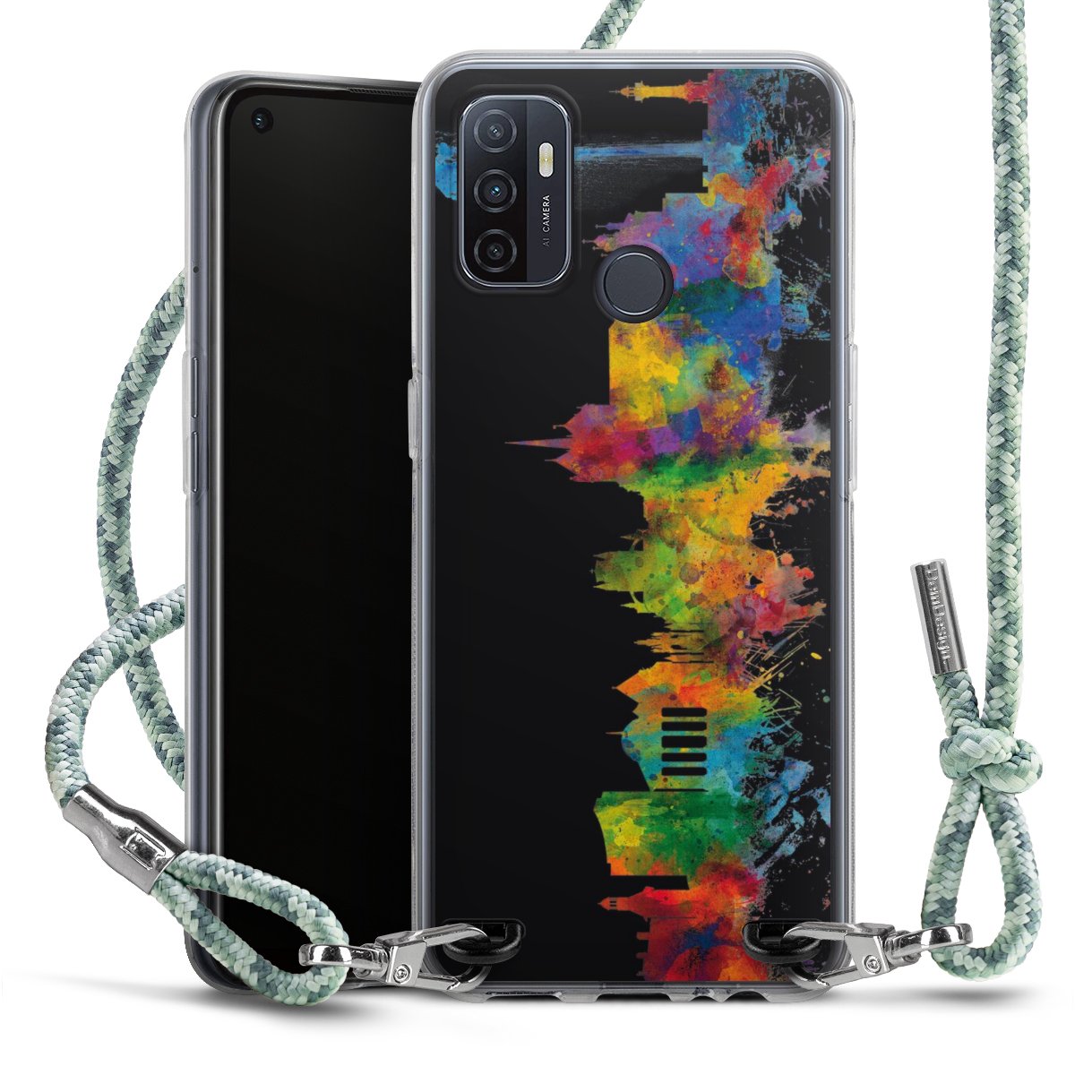 The flexible case is made from a highquality TPU material (thermoplastic Polyurethan). Thanks to its longlasting and break resistant characterisitcs, the case is flexible yet consistent in form and has a great grip and feel. The textile strap made from Polyester gives a chic yet casual accent allowing you to carry your phone like a bag or necklace - a practical gadget perfect for your next adventure. The textile strap is about 1.70 meters long and the length can easily be adjusted through the knots. Our Carry Case is available in Colourful, Mint-Camouflage, Very-Berry, Sahara-Sand and Sparkling-Neon. The ends of the textile strap are covered with metallic end caps to protect them against fraying.