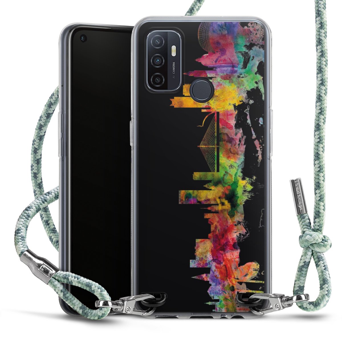 The flexible case is made from a highquality TPU material (thermoplastic Polyurethan). Thanks to its longlasting and break resistant characterisitcs, the case is flexible yet consistent in form and has a great grip and feel. The textile strap made from Polyester gives a chic yet casual accent allowing you to carry your phone like a bag or necklace - a practical gadget perfect for your next adventure. The textile strap is about 1.70 meters long and the length can easily be adjusted through the knots. Our Carry Case is available in Colourful, Mint-Camouflage, Very-Berry, Sahara-Sand and Sparkling-Neon. The ends of the textile strap are covered with metallic end caps to protect them against fraying.