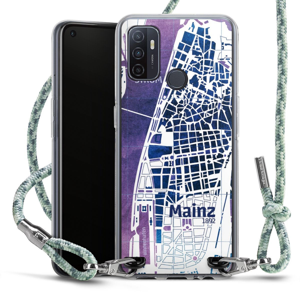 The flexible case is made from a highquality TPU material (thermoplastic Polyurethan). Thanks to its longlasting and break resistant characterisitcs, the case is flexible yet consistent in form and has a great grip and feel. The textile strap made from Polyester gives a chic yet casual accent allowing you to carry your phone like a bag or necklace - a practical gadget perfect for your next adventure. The textile strap is about 1.70 meters long and the length can easily be adjusted through the knots. Our Carry Case is available in Colourful, Mint-Camouflage, Very-Berry, Sahara-Sand and Sparkling-Neon. The ends of the textile strap are covered with metallic end caps to protect them against fraying.