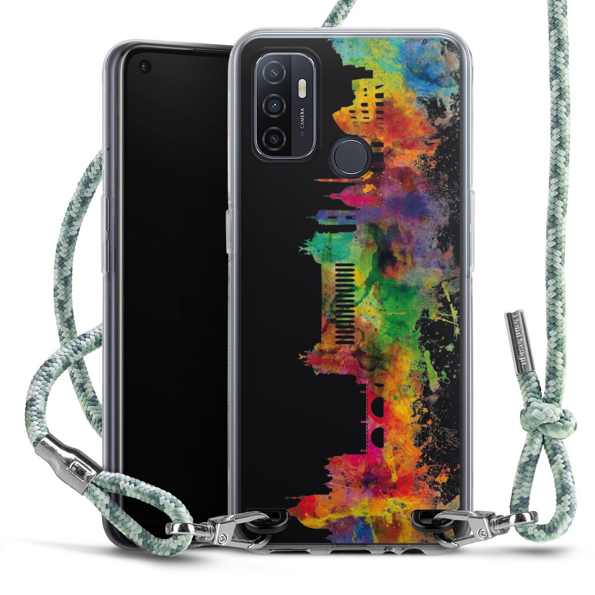 The flexible case is made from a highquality TPU material (thermoplastic Polyurethan). Thanks to its longlasting and break resistant characterisitcs, the case is flexible yet consistent in form and has a great grip and feel. The textile strap made from Polyester gives a chic yet casual accent allowing you to carry your phone like a bag or necklace - a practical gadget perfect for your next adventure. The textile strap is about 1.70 meters long and the length can easily be adjusted through the knots. Our Carry Case is available in Colourful, Mint-Camouflage, Very-Berry, Sahara-Sand and Sparkling-Neon. The ends of the textile strap are covered with metallic end caps to protect them against fraying.