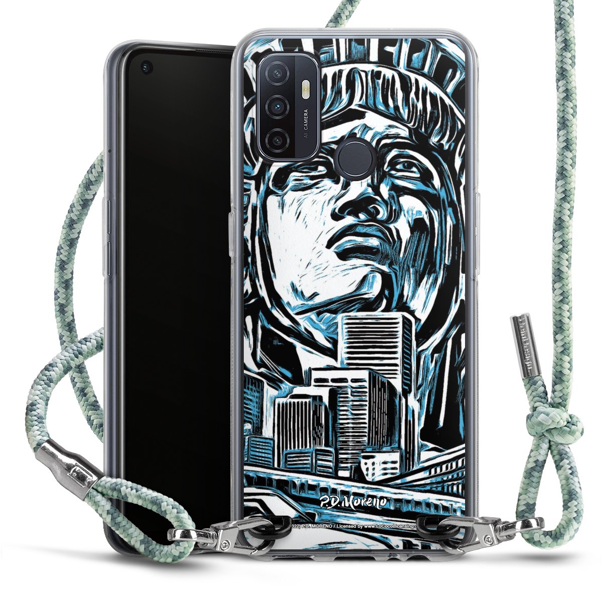 The flexible case is made from a highquality TPU material (thermoplastic Polyurethan). Thanks to its longlasting and break resistant characterisitcs, the case is flexible yet consistent in form and has a great grip and feel. The textile strap made from Polyester gives a chic yet casual accent allowing you to carry your phone like a bag or necklace - a practical gadget perfect for your next adventure. The textile strap is about 1.70 meters long and the length can easily be adjusted through the knots. Our Carry Case is available in Colourful, Mint-Camouflage, Very-Berry, Sahara-Sand and Sparkling-Neon. The ends of the textile strap are covered with metallic end caps to protect them against fraying.