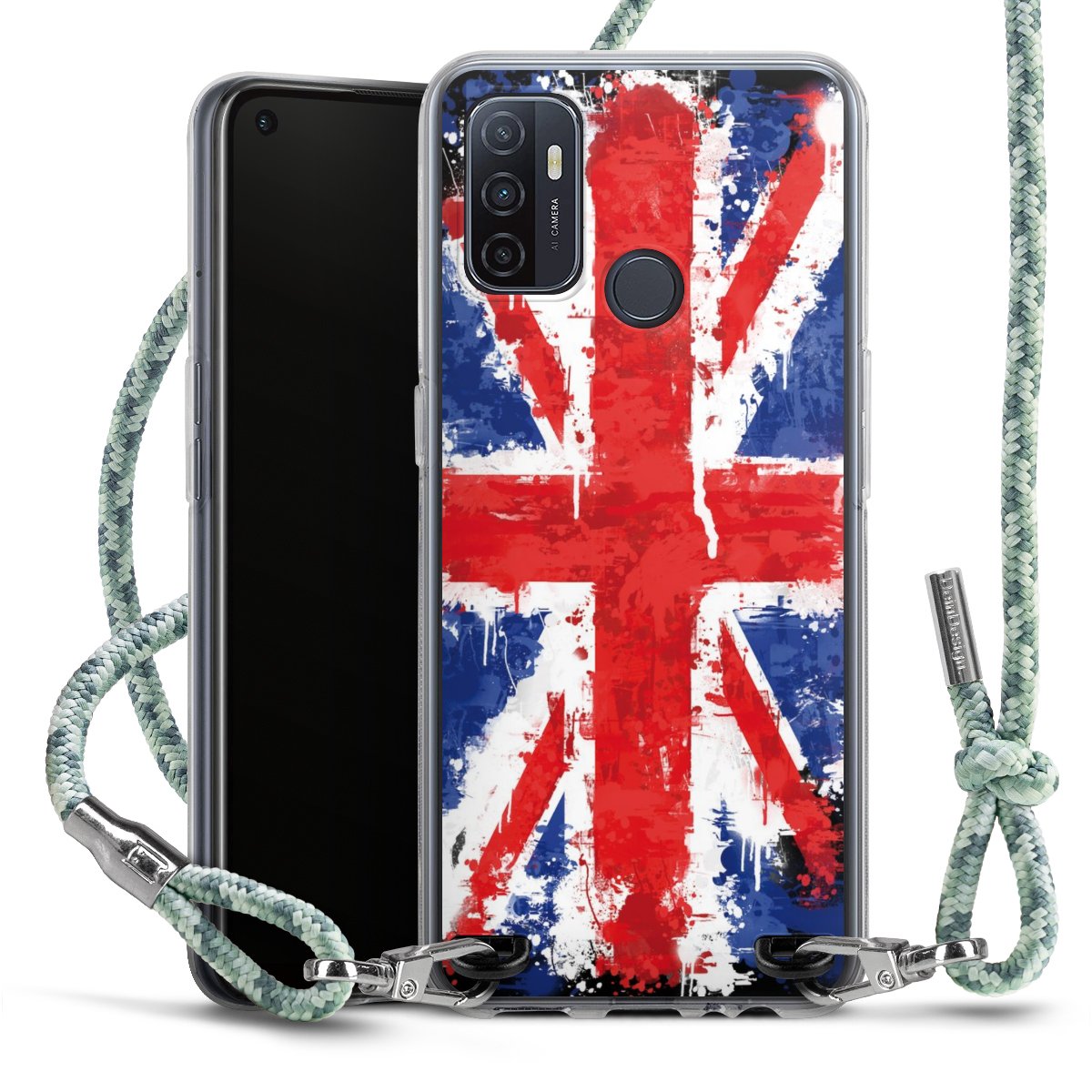 The flexible case is made from a highquality TPU material (thermoplastic Polyurethan). Thanks to its longlasting and break resistant characterisitcs, the case is flexible yet consistent in form and has a great grip and feel. The textile strap made from Polyester gives a chic yet casual accent allowing you to carry your phone like a bag or necklace - a practical gadget perfect for your next adventure. The textile strap is about 1.70 meters long and the length can easily be adjusted through the knots. Our Carry Case is available in Colourful, Mint-Camouflage, Very-Berry, Sahara-Sand and Sparkling-Neon. The ends of the textile strap are covered with metallic end caps to protect them against fraying.