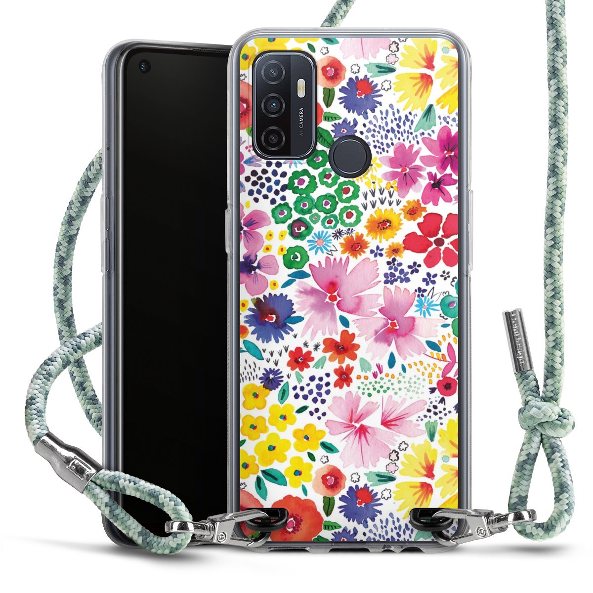 The flexible case is made from a highquality TPU material (thermoplastic Polyurethan). Thanks to its longlasting and break resistant characterisitcs, the case is flexible yet consistent in form and has a great grip and feel. The textile strap made from Polyester gives a chic yet casual accent allowing you to carry your phone like a bag or necklace - a practical gadget perfect for your next adventure. The textile strap is about 1.70 meters long and the length can easily be adjusted through the knots. Our Carry Case is available in Colourful, Mint-Camouflage, Very-Berry, Sahara-Sand and Sparkling-Neon. The ends of the textile strap are covered with metallic end caps to protect them against fraying.