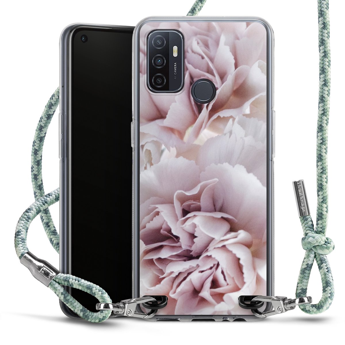 The flexible case is made from a highquality TPU material (thermoplastic Polyurethan). Thanks to its longlasting and break resistant characterisitcs, the case is flexible yet consistent in form and has a great grip and feel. The textile strap made from Polyester gives a chic yet casual accent allowing you to carry your phone like a bag or necklace - a practical gadget perfect for your next adventure. The textile strap is about 1.70 meters long and the length can easily be adjusted through the knots. Our Carry Case is available in Colourful, Mint-Camouflage, Very-Berry, Sahara-Sand and Sparkling-Neon. The ends of the textile strap are covered with metallic end caps to protect them against fraying.