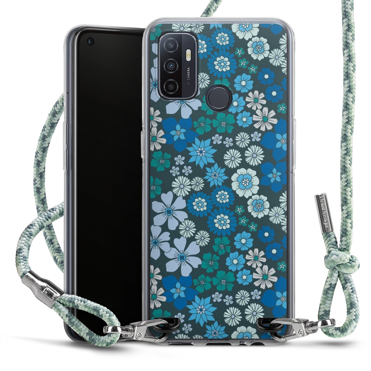The flexible case is made from a highquality TPU material (thermoplastic Polyurethan). Thanks to its longlasting and break resistant characterisitcs, the case is flexible yet consistent in form and has a great grip and feel. The textile strap made from Polyester gives a chic yet casual accent allowing you to carry your phone like a bag or necklace - a practical gadget perfect for your next adventure. The textile strap is about 1.70 meters long and the length can easily be adjusted through the knots. Our Carry Case is available in Colourful, Mint-Camouflage, Very-Berry, Sahara-Sand and Sparkling-Neon. The ends of the textile strap are covered with metallic end caps to protect them against fraying.