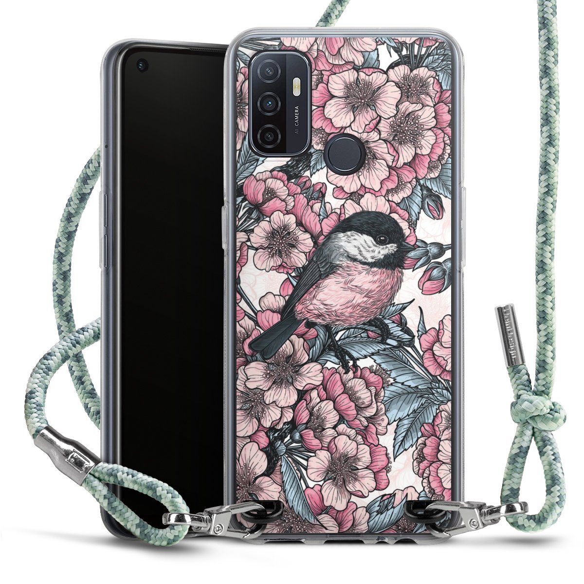 The flexible case is made from a highquality TPU material (thermoplastic Polyurethan). Thanks to its longlasting and break resistant characterisitcs, the case is flexible yet consistent in form and has a great grip and feel. The textile strap made from Polyester gives a chic yet casual accent allowing you to carry your phone like a bag or necklace - a practical gadget perfect for your next adventure. The textile strap is about 1.70 meters long and the length can easily be adjusted through the knots. Our Carry Case is available in Colourful, Mint-Camouflage, Very-Berry, Sahara-Sand and Sparkling-Neon. The ends of the textile strap are covered with metallic end caps to protect them against fraying.