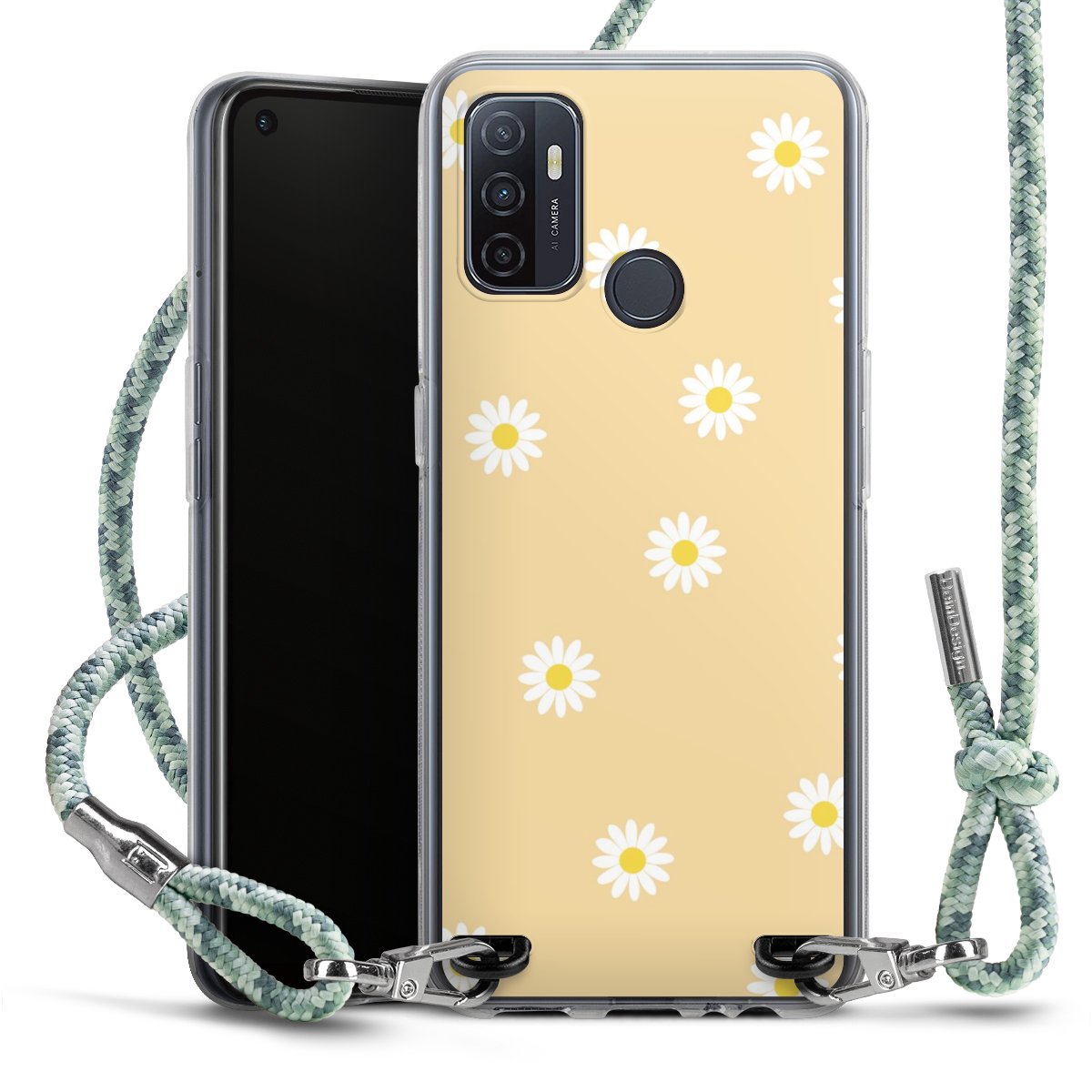 The flexible case is made from a highquality TPU material (thermoplastic Polyurethan). Thanks to its longlasting and break resistant characterisitcs, the case is flexible yet consistent in form and has a great grip and feel. The textile strap made from Polyester gives a chic yet casual accent allowing you to carry your phone like a bag or necklace - a practical gadget perfect for your next adventure. The textile strap is about 1.70 meters long and the length can easily be adjusted through the knots. Our Carry Case is available in Colourful, Mint-Camouflage, Very-Berry, Sahara-Sand and Sparkling-Neon. The ends of the textile strap are covered with metallic end caps to protect them against fraying.