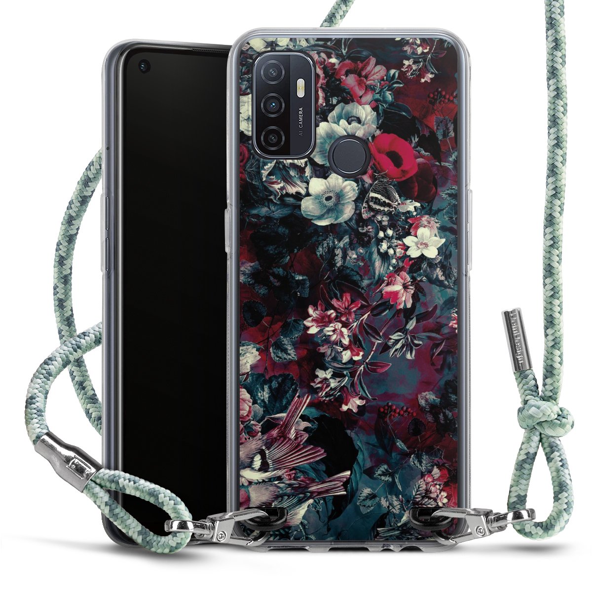 The flexible case is made from a highquality TPU material (thermoplastic Polyurethan). Thanks to its longlasting and break resistant characterisitcs, the case is flexible yet consistent in form and has a great grip and feel. The textile strap made from Polyester gives a chic yet casual accent allowing you to carry your phone like a bag or necklace - a practical gadget perfect for your next adventure. The textile strap is about 1.70 meters long and the length can easily be adjusted through the knots. Our Carry Case is available in Colourful, Mint-Camouflage, Very-Berry, Sahara-Sand and Sparkling-Neon. The ends of the textile strap are covered with metallic end caps to protect them against fraying.