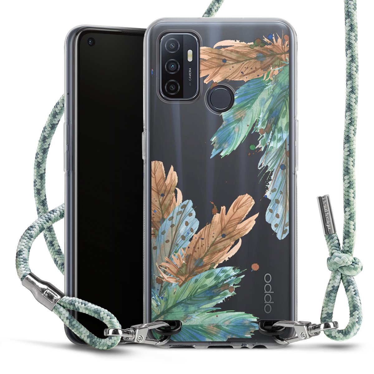 The flexible case is made from a highquality TPU material (thermoplastic Polyurethan). Thanks to its longlasting and break resistant characterisitcs, the case is flexible yet consistent in form and has a great grip and feel. The textile strap made from Polyester gives a chic yet casual accent allowing you to carry your phone like a bag or necklace - a practical gadget perfect for your next adventure. The textile strap is about 1.70 meters long and the length can easily be adjusted through the knots. Our Carry Case is available in Colourful, Mint-Camouflage, Very-Berry, Sahara-Sand and Sparkling-Neon. The ends of the textile strap are covered with metallic end caps to protect them against fraying.