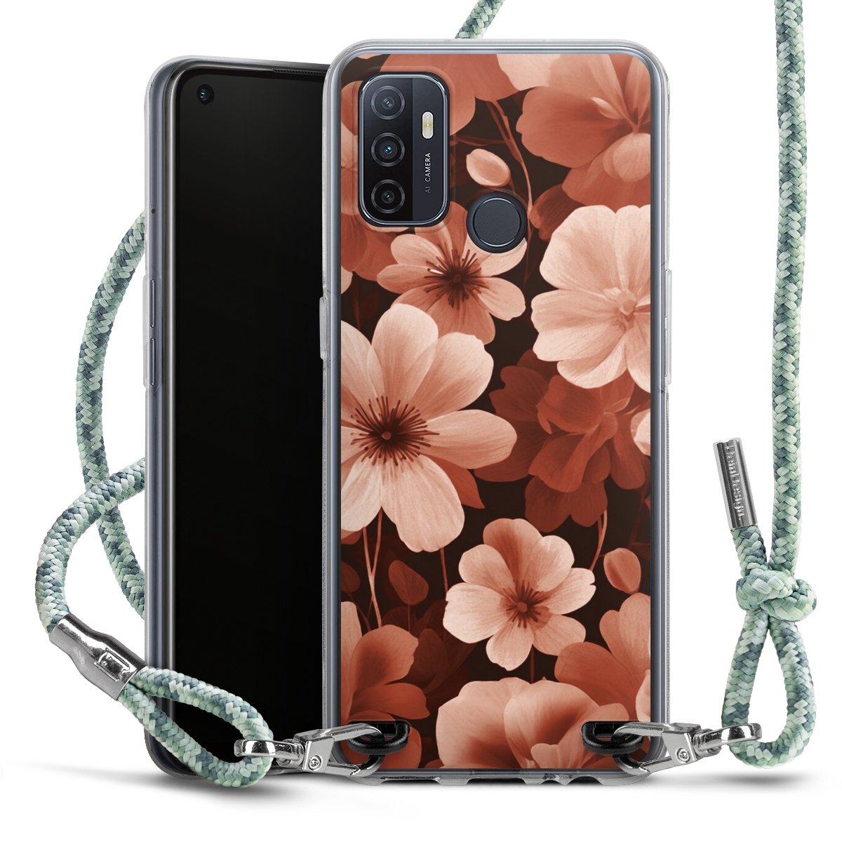 The flexible case is made from a highquality TPU material (thermoplastic Polyurethan). Thanks to its longlasting and break resistant characterisitcs, the case is flexible yet consistent in form and has a great grip and feel. The textile strap made from Polyester gives a chic yet casual accent allowing you to carry your phone like a bag or necklace - a practical gadget perfect for your next adventure. The textile strap is about 1.70 meters long and the length can easily be adjusted through the knots. Our Carry Case is available in Colourful, Mint-Camouflage, Very-Berry, Sahara-Sand and Sparkling-Neon. The ends of the textile strap are covered with metallic end caps to protect them against fraying.