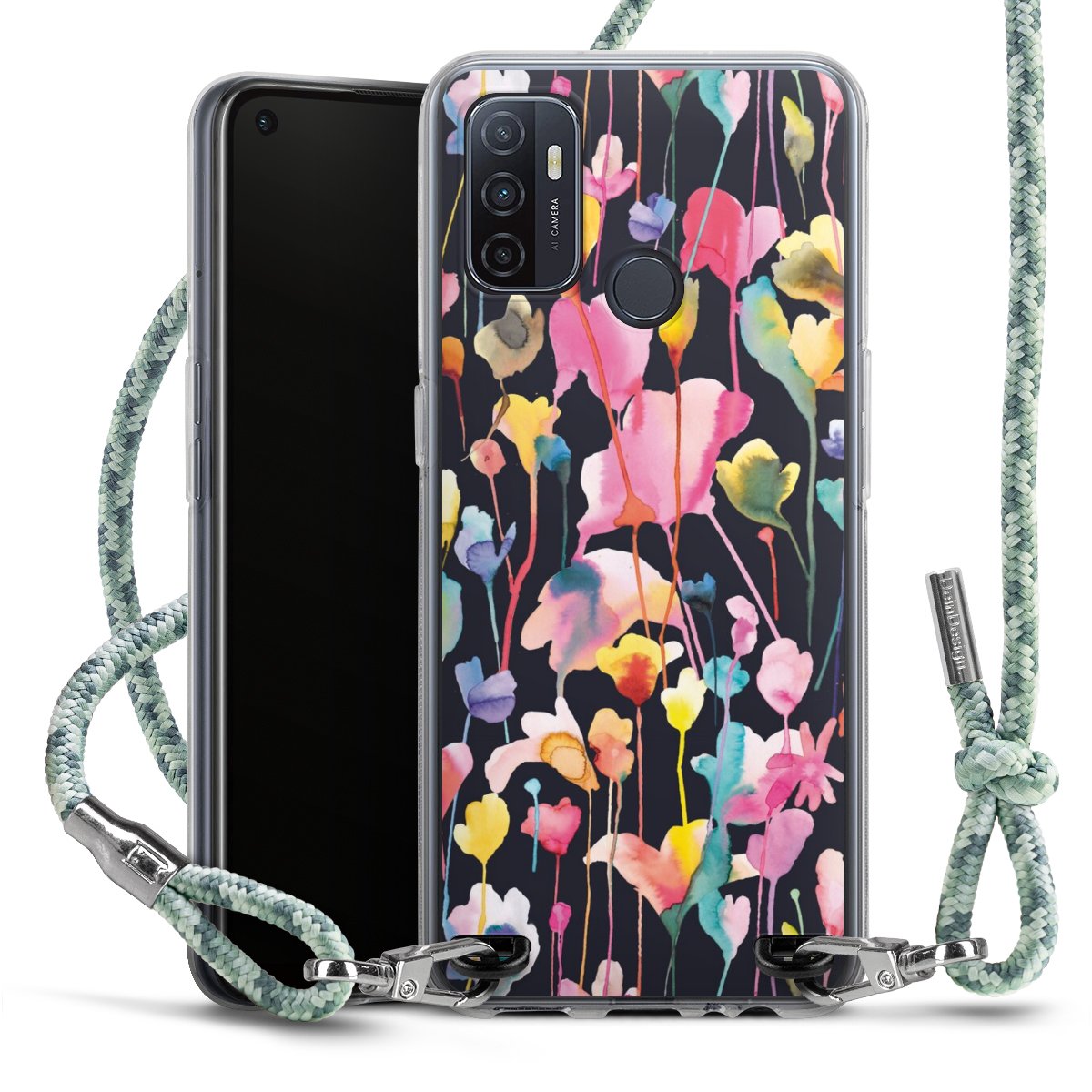 The flexible case is made from a highquality TPU material (thermoplastic Polyurethan). Thanks to its longlasting and break resistant characterisitcs, the case is flexible yet consistent in form and has a great grip and feel. The textile strap made from Polyester gives a chic yet casual accent allowing you to carry your phone like a bag or necklace - a practical gadget perfect for your next adventure. The textile strap is about 1.70 meters long and the length can easily be adjusted through the knots. Our Carry Case is available in Colourful, Mint-Camouflage, Very-Berry, Sahara-Sand and Sparkling-Neon. The ends of the textile strap are covered with metallic end caps to protect them against fraying.