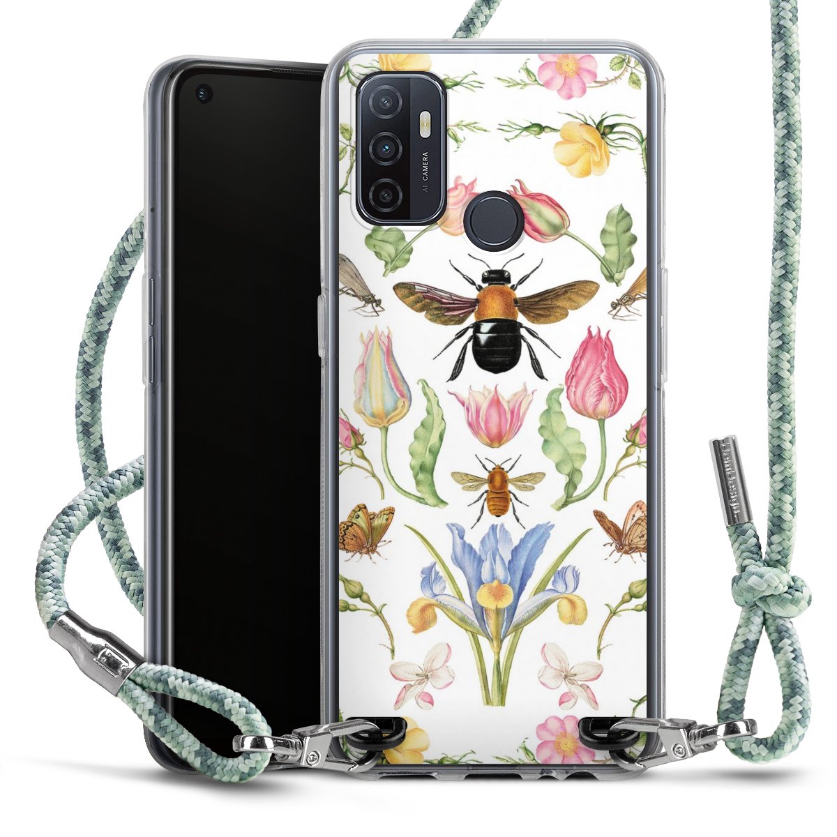 The flexible case is made from a highquality TPU material (thermoplastic Polyurethan). Thanks to its longlasting and break resistant characterisitcs, the case is flexible yet consistent in form and has a great grip and feel. The textile strap made from Polyester gives a chic yet casual accent allowing you to carry your phone like a bag or necklace - a practical gadget perfect for your next adventure. The textile strap is about 1.70 meters long and the length can easily be adjusted through the knots. Our Carry Case is available in Colourful, Mint-Camouflage, Very-Berry, Sahara-Sand and Sparkling-Neon. The ends of the textile strap are covered with metallic end caps to protect them against fraying.