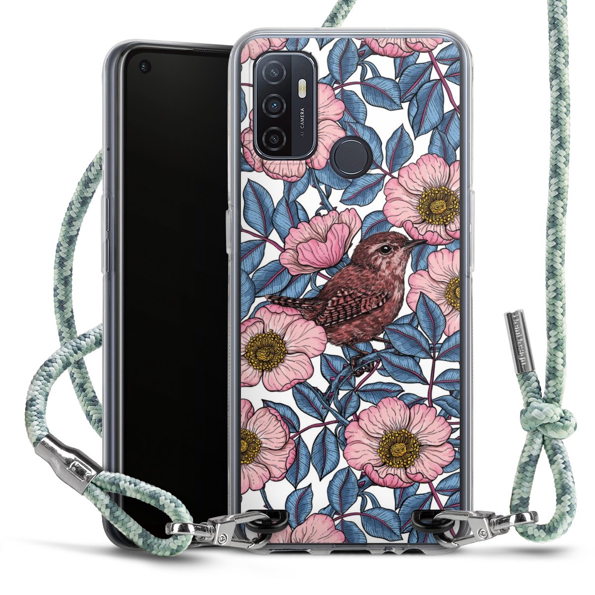The flexible case is made from a highquality TPU material (thermoplastic Polyurethan). Thanks to its longlasting and break resistant characterisitcs, the case is flexible yet consistent in form and has a great grip and feel. The textile strap made from Polyester gives a chic yet casual accent allowing you to carry your phone like a bag or necklace - a practical gadget perfect for your next adventure. The textile strap is about 1.70 meters long and the length can easily be adjusted through the knots. Our Carry Case is available in Colourful, Mint-Camouflage, Very-Berry, Sahara-Sand and Sparkling-Neon. The ends of the textile strap are covered with metallic end caps to protect them against fraying.