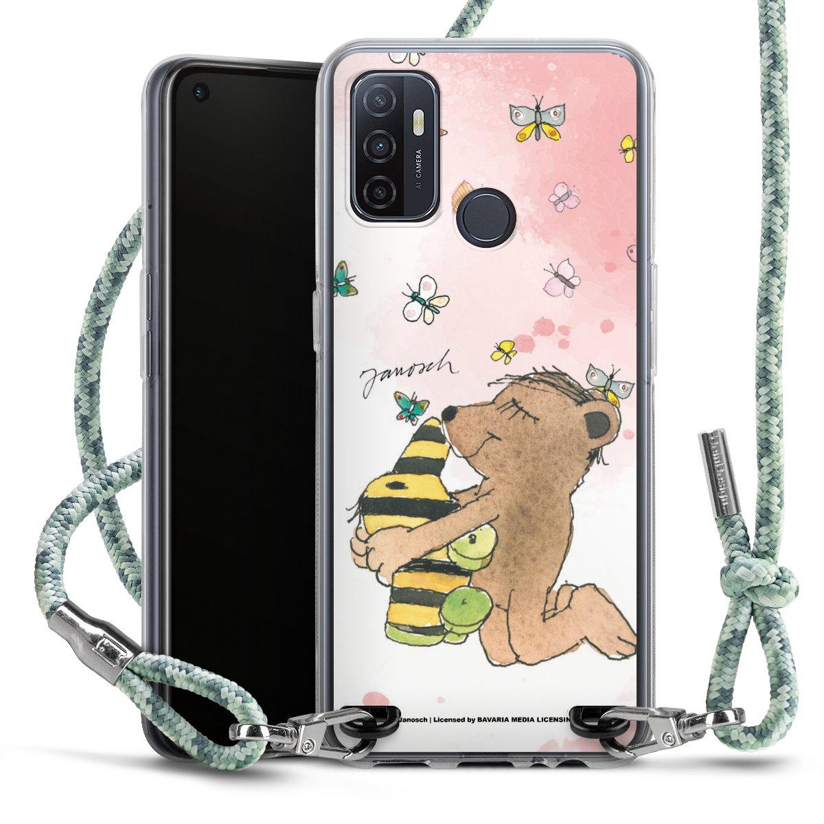 The flexible case is made from a highquality TPU material (thermoplastic Polyurethan). Thanks to its longlasting and break resistant characterisitcs, the case is flexible yet consistent in form and has a great grip and feel. The textile strap made from Polyester gives a chic yet casual accent allowing you to carry your phone like a bag or necklace - a practical gadget perfect for your next adventure. The textile strap is about 1.70 meters long and the length can easily be adjusted through the knots. Our Carry Case is available in Colourful, Mint-Camouflage, Very-Berry, Sahara-Sand and Sparkling-Neon. The ends of the textile strap are covered with metallic end caps to protect them against fraying.