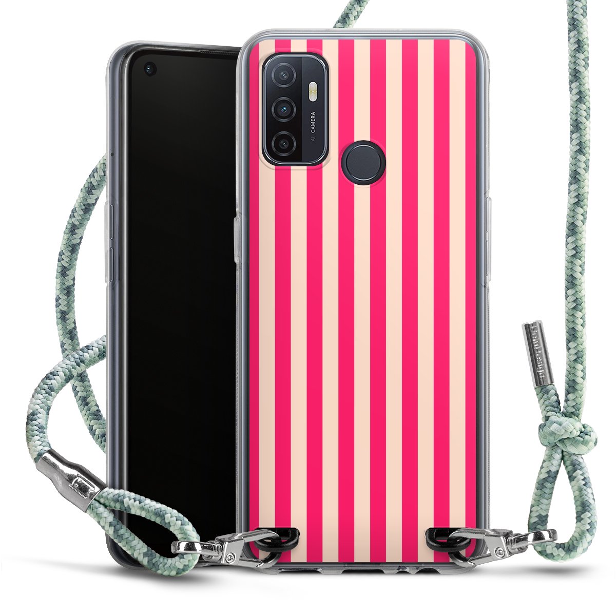The flexible case is made from a highquality TPU material (thermoplastic Polyurethan). Thanks to its longlasting and break resistant characterisitcs, the case is flexible yet consistent in form and has a great grip and feel. The textile strap made from Polyester gives a chic yet casual accent allowing you to carry your phone like a bag or necklace - a practical gadget perfect for your next adventure. The textile strap is about 1.70 meters long and the length can easily be adjusted through the knots. Our Carry Case is available in Colourful, Mint-Camouflage, Very-Berry, Sahara-Sand and Sparkling-Neon. The ends of the textile strap are covered with metallic end caps to protect them against fraying.