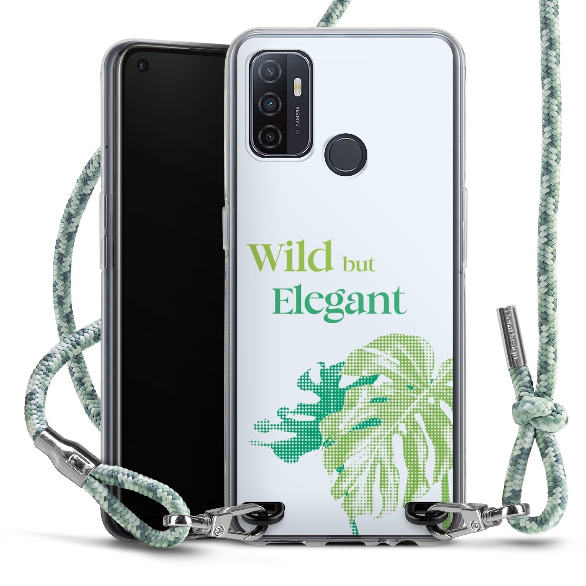 The flexible case is made from a highquality TPU material (thermoplastic Polyurethan). Thanks to its longlasting and break resistant characterisitcs, the case is flexible yet consistent in form and has a great grip and feel. The textile strap made from Polyester gives a chic yet casual accent allowing you to carry your phone like a bag or necklace - a practical gadget perfect for your next adventure. The textile strap is about 1.70 meters long and the length can easily be adjusted through the knots. Our Carry Case is available in Colourful, Mint-Camouflage, Very-Berry, Sahara-Sand and Sparkling-Neon. The ends of the textile strap are covered with metallic end caps to protect them against fraying.