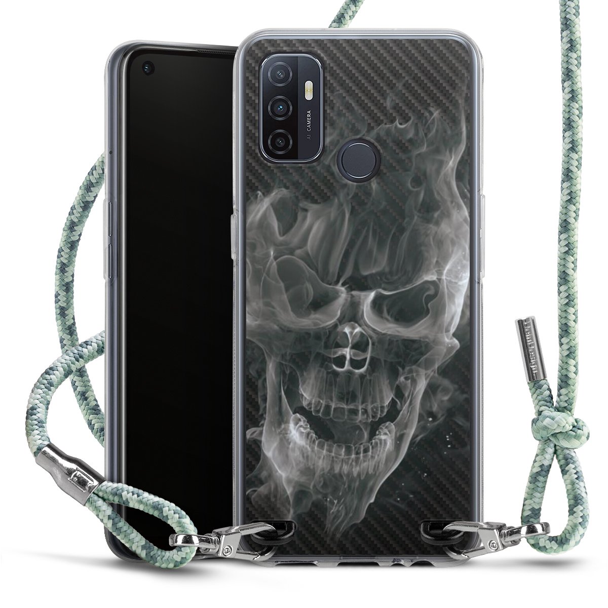 The flexible case is made from a highquality TPU material (thermoplastic Polyurethan). Thanks to its longlasting and break resistant characterisitcs, the case is flexible yet consistent in form and has a great grip and feel. The textile strap made from Polyester gives a chic yet casual accent allowing you to carry your phone like a bag or necklace - a practical gadget perfect for your next adventure. The textile strap is about 1.70 meters long and the length can easily be adjusted through the knots. Our Carry Case is available in Colourful, Mint-Camouflage, Very-Berry, Sahara-Sand and Sparkling-Neon. The ends of the textile strap are covered with metallic end caps to protect them against fraying.