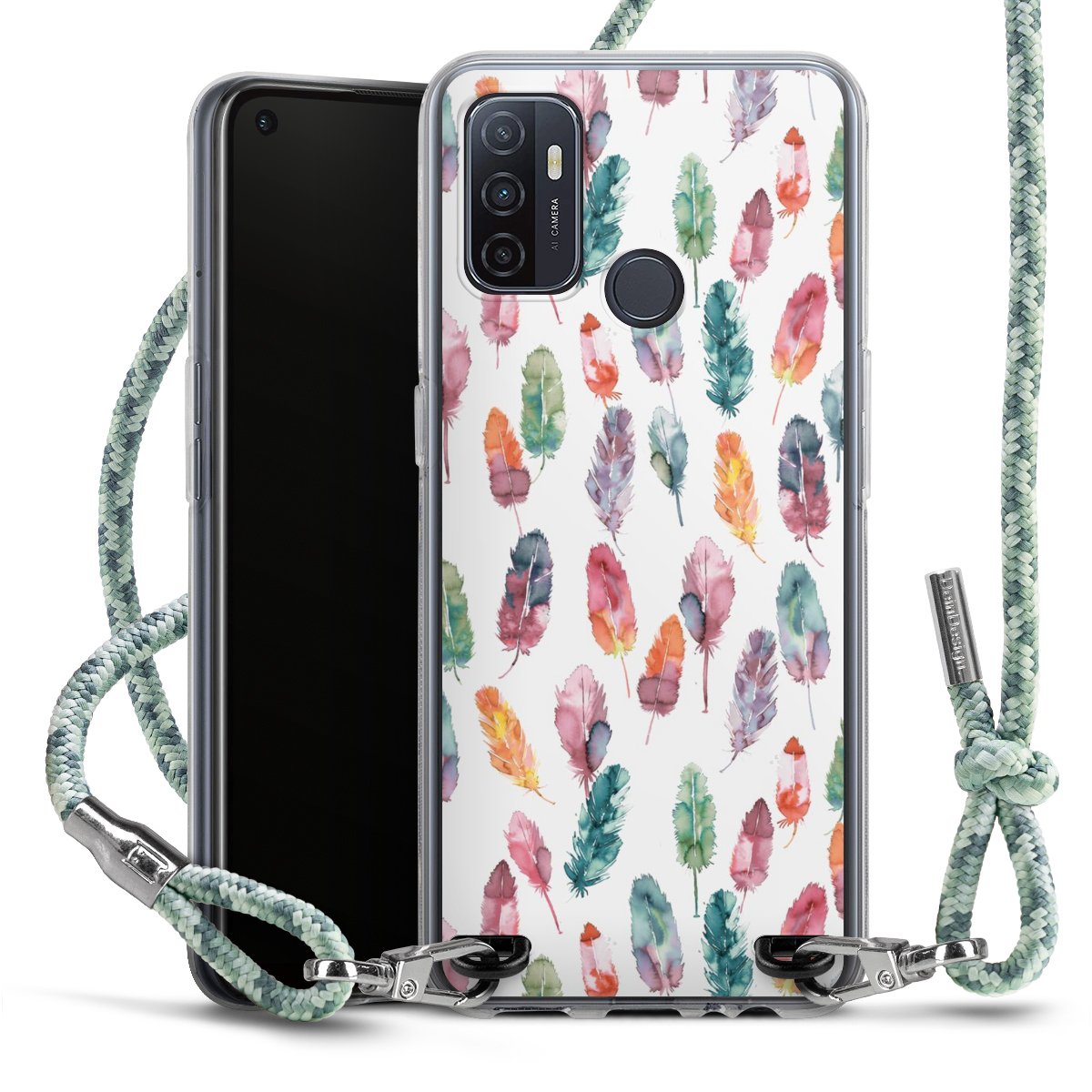 The flexible case is made from a highquality TPU material (thermoplastic Polyurethan). Thanks to its longlasting and break resistant characterisitcs, the case is flexible yet consistent in form and has a great grip and feel. The textile strap made from Polyester gives a chic yet casual accent allowing you to carry your phone like a bag or necklace - a practical gadget perfect for your next adventure. The textile strap is about 1.70 meters long and the length can easily be adjusted through the knots. Our Carry Case is available in Colourful, Mint-Camouflage, Very-Berry, Sahara-Sand and Sparkling-Neon. The ends of the textile strap are covered with metallic end caps to protect them against fraying.