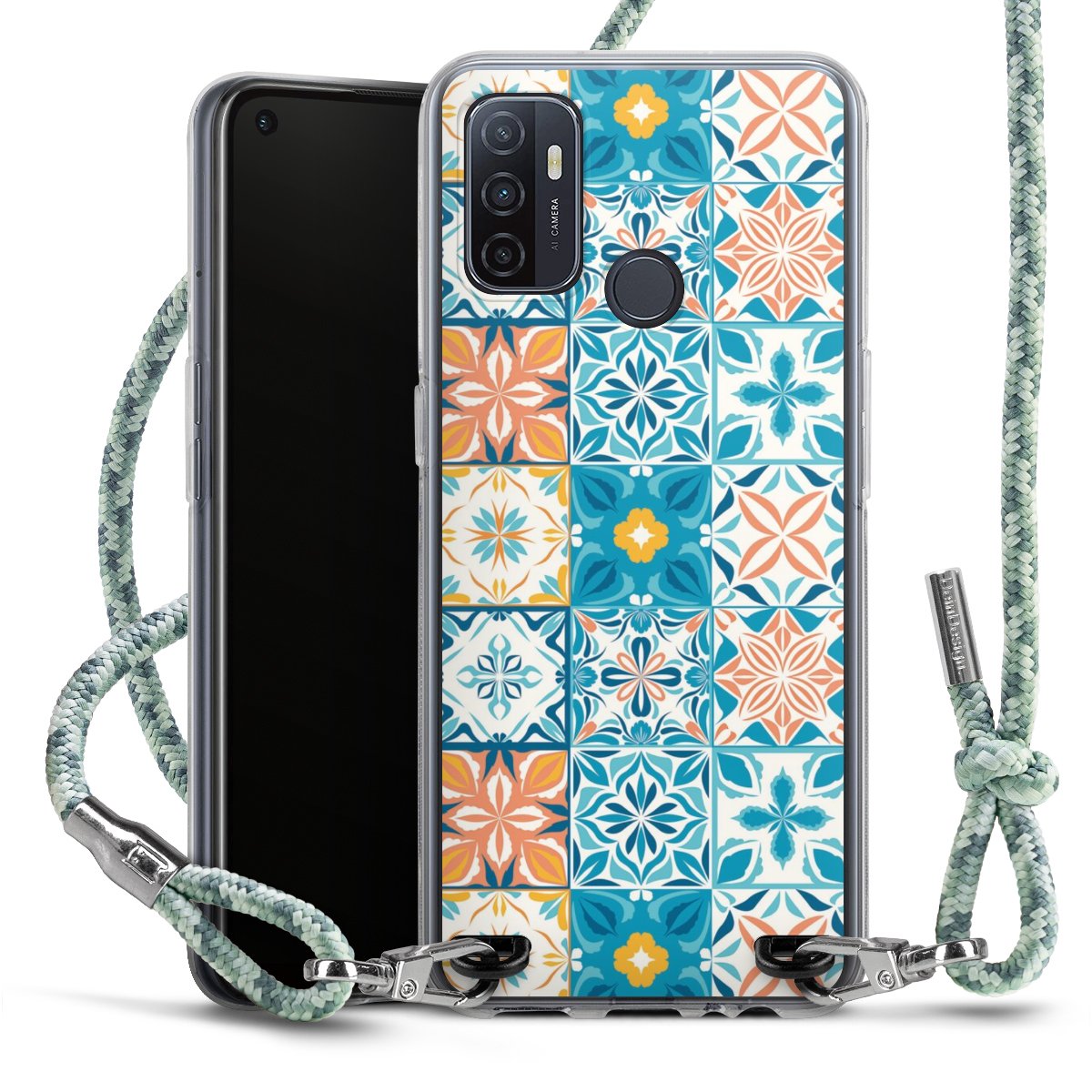 The flexible case is made from a highquality TPU material (thermoplastic Polyurethan). Thanks to its longlasting and break resistant characterisitcs, the case is flexible yet consistent in form and has a great grip and feel. The textile strap made from Polyester gives a chic yet casual accent allowing you to carry your phone like a bag or necklace - a practical gadget perfect for your next adventure. The textile strap is about 1.70 meters long and the length can easily be adjusted through the knots. Our Carry Case is available in Colourful, Mint-Camouflage, Very-Berry, Sahara-Sand and Sparkling-Neon. The ends of the textile strap are covered with metallic end caps to protect them against fraying.