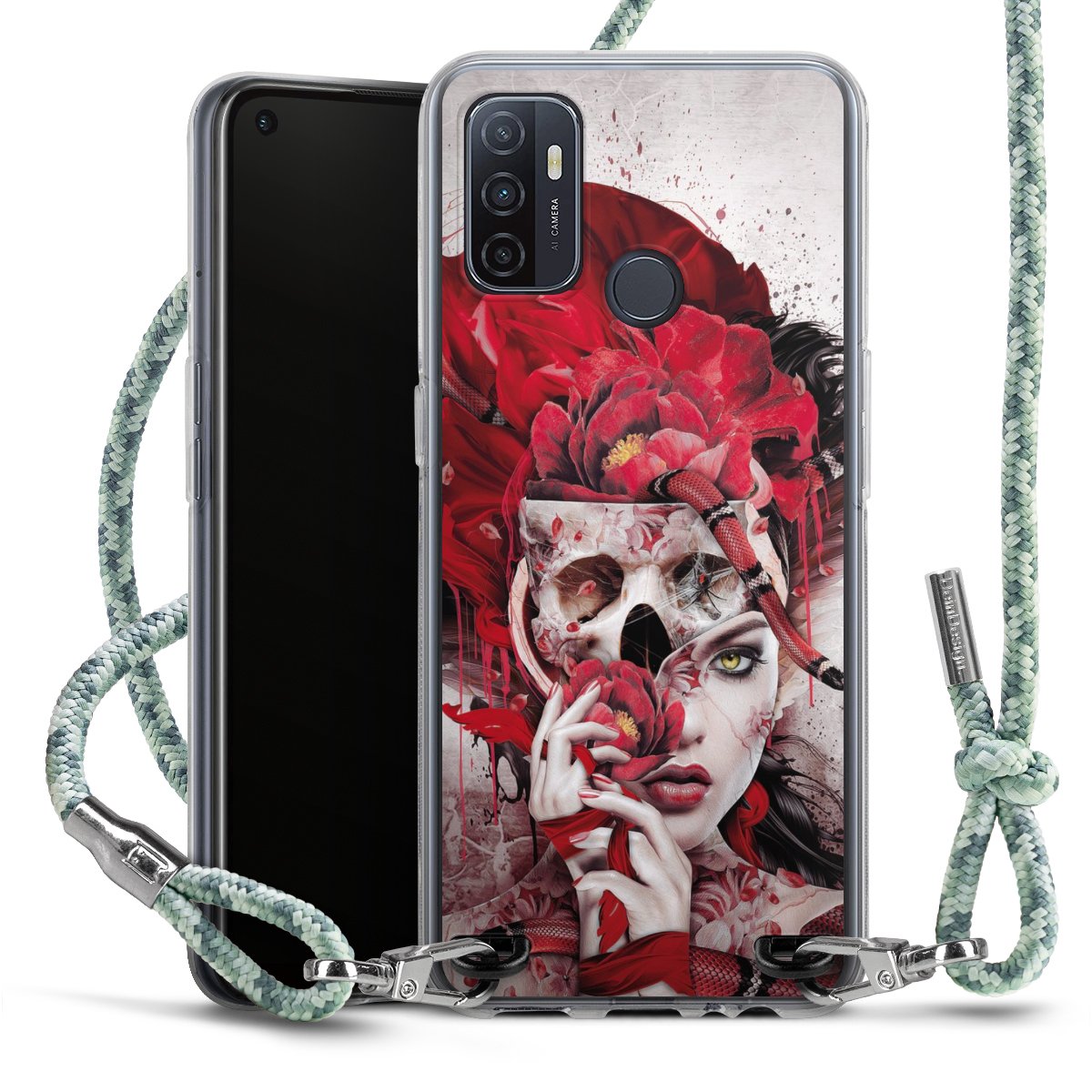 The flexible case is made from a highquality TPU material (thermoplastic Polyurethan). Thanks to its longlasting and break resistant characterisitcs, the case is flexible yet consistent in form and has a great grip and feel. The textile strap made from Polyester gives a chic yet casual accent allowing you to carry your phone like a bag or necklace - a practical gadget perfect for your next adventure. The textile strap is about 1.70 meters long and the length can easily be adjusted through the knots. Our Carry Case is available in Colourful, Mint-Camouflage, Very-Berry, Sahara-Sand and Sparkling-Neon. The ends of the textile strap are covered with metallic end caps to protect them against fraying.