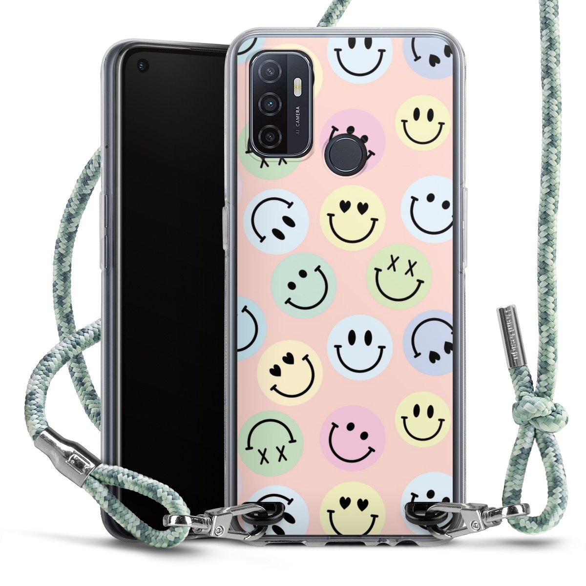The flexible case is made from a highquality TPU material (thermoplastic Polyurethan). Thanks to its longlasting and break resistant characterisitcs, the case is flexible yet consistent in form and has a great grip and feel. The textile strap made from Polyester gives a chic yet casual accent allowing you to carry your phone like a bag or necklace - a practical gadget perfect for your next adventure. The textile strap is about 1.70 meters long and the length can easily be adjusted through the knots. Our Carry Case is available in Colourful, Mint-Camouflage, Very-Berry, Sahara-Sand and Sparkling-Neon. The ends of the textile strap are covered with metallic end caps to protect them against fraying.