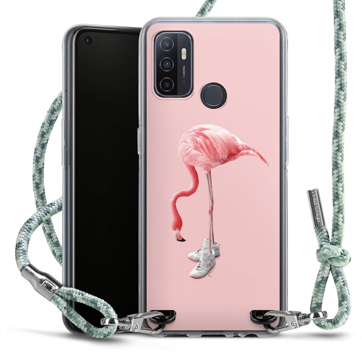 The flexible case is made from a highquality TPU material (thermoplastic Polyurethan). Thanks to its longlasting and break resistant characterisitcs, the case is flexible yet consistent in form and has a great grip and feel. The textile strap made from Polyester gives a chic yet casual accent allowing you to carry your phone like a bag or necklace - a practical gadget perfect for your next adventure. The textile strap is about 1.70 meters long and the length can easily be adjusted through the knots. Our Carry Case is available in Colourful, Mint-Camouflage, Very-Berry, Sahara-Sand and Sparkling-Neon. The ends of the textile strap are covered with metallic end caps to protect them against fraying.