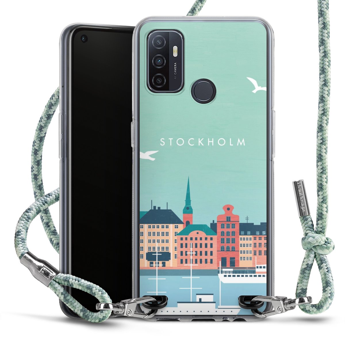 The flexible case is made from a highquality TPU material (thermoplastic Polyurethan). Thanks to its longlasting and break resistant characterisitcs, the case is flexible yet consistent in form and has a great grip and feel. The textile strap made from Polyester gives a chic yet casual accent allowing you to carry your phone like a bag or necklace - a practical gadget perfect for your next adventure. The textile strap is about 1.70 meters long and the length can easily be adjusted through the knots. Our Carry Case is available in Colourful, Mint-Camouflage, Very-Berry, Sahara-Sand and Sparkling-Neon. The ends of the textile strap are covered with metallic end caps to protect them against fraying.