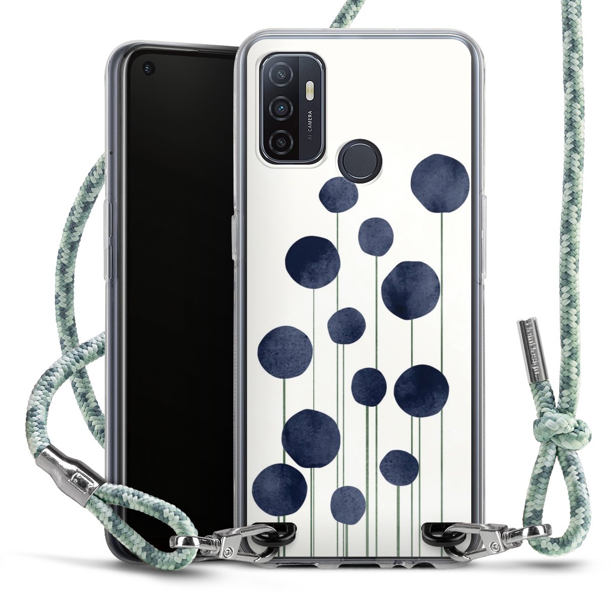 The flexible case is made from a highquality TPU material (thermoplastic Polyurethan). Thanks to its longlasting and break resistant characterisitcs, the case is flexible yet consistent in form and has a great grip and feel. The textile strap made from Polyester gives a chic yet casual accent allowing you to carry your phone like a bag or necklace - a practical gadget perfect for your next adventure. The textile strap is about 1.70 meters long and the length can easily be adjusted through the knots. Our Carry Case is available in Colourful, Mint-Camouflage, Very-Berry, Sahara-Sand and Sparkling-Neon. The ends of the textile strap are covered with metallic end caps to protect them against fraying.