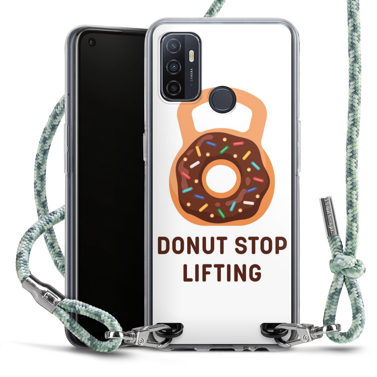 The flexible case is made from a highquality TPU material (thermoplastic Polyurethan). Thanks to its longlasting and break resistant characterisitcs, the case is flexible yet consistent in form and has a great grip and feel. The textile strap made from Polyester gives a chic yet casual accent allowing you to carry your phone like a bag or necklace - a practical gadget perfect for your next adventure. The textile strap is about 1.70 meters long and the length can easily be adjusted through the knots. Our Carry Case is available in Colourful, Mint-Camouflage, Very-Berry, Sahara-Sand and Sparkling-Neon. The ends of the textile strap are covered with metallic end caps to protect them against fraying.