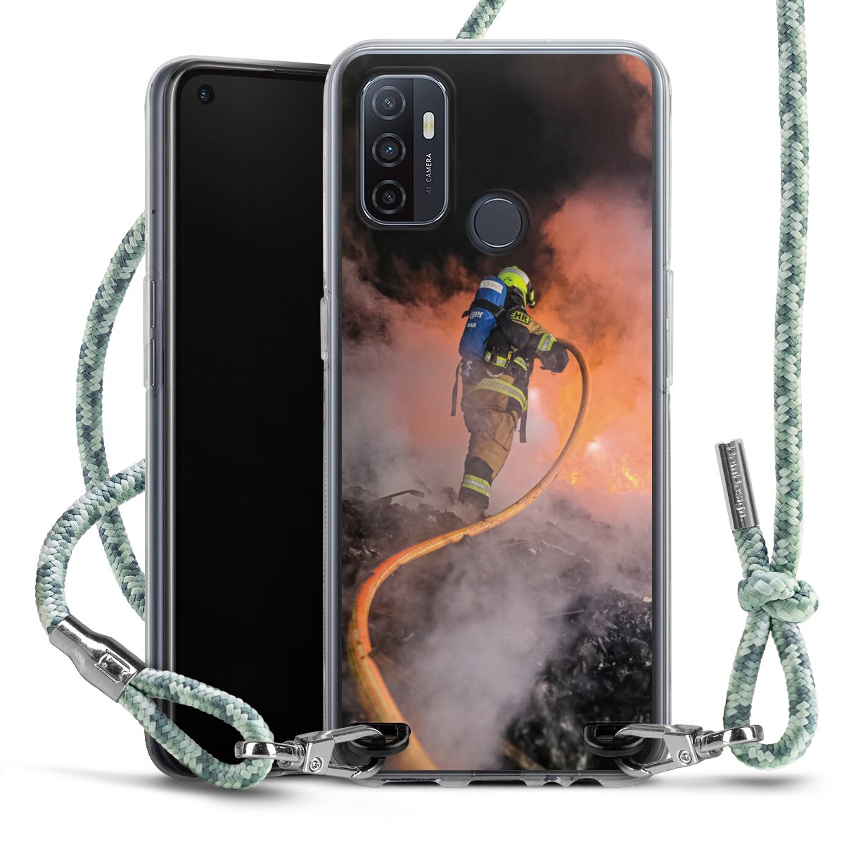 The flexible case is made from a highquality TPU material (thermoplastic Polyurethan). Thanks to its longlasting and break resistant characterisitcs, the case is flexible yet consistent in form and has a great grip and feel. The textile strap made from Polyester gives a chic yet casual accent allowing you to carry your phone like a bag or necklace - a practical gadget perfect for your next adventure. The textile strap is about 1.70 meters long and the length can easily be adjusted through the knots. Our Carry Case is available in Colourful, Mint-Camouflage, Very-Berry, Sahara-Sand and Sparkling-Neon. The ends of the textile strap are covered with metallic end caps to protect them against fraying.