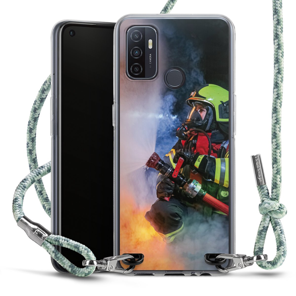 The flexible case is made from a highquality TPU material (thermoplastic Polyurethan). Thanks to its longlasting and break resistant characterisitcs, the case is flexible yet consistent in form and has a great grip and feel. The textile strap made from Polyester gives a chic yet casual accent allowing you to carry your phone like a bag or necklace - a practical gadget perfect for your next adventure. The textile strap is about 1.70 meters long and the length can easily be adjusted through the knots. Our Carry Case is available in Colourful, Mint-Camouflage, Very-Berry, Sahara-Sand and Sparkling-Neon. The ends of the textile strap are covered with metallic end caps to protect them against fraying.