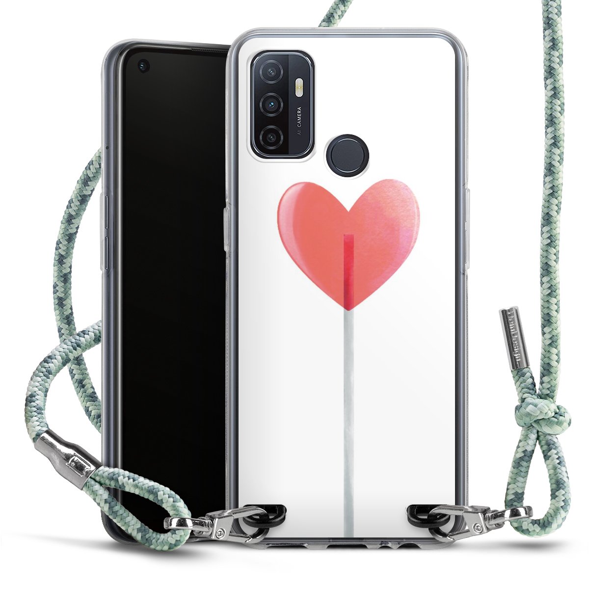 The flexible case is made from a highquality TPU material (thermoplastic Polyurethan). Thanks to its longlasting and break resistant characterisitcs, the case is flexible yet consistent in form and has a great grip and feel. The textile strap made from Polyester gives a chic yet casual accent allowing you to carry your phone like a bag or necklace - a practical gadget perfect for your next adventure. The textile strap is about 1.70 meters long and the length can easily be adjusted through the knots. Our Carry Case is available in Colourful, Mint-Camouflage, Very-Berry, Sahara-Sand and Sparkling-Neon. The ends of the textile strap are covered with metallic end caps to protect them against fraying.