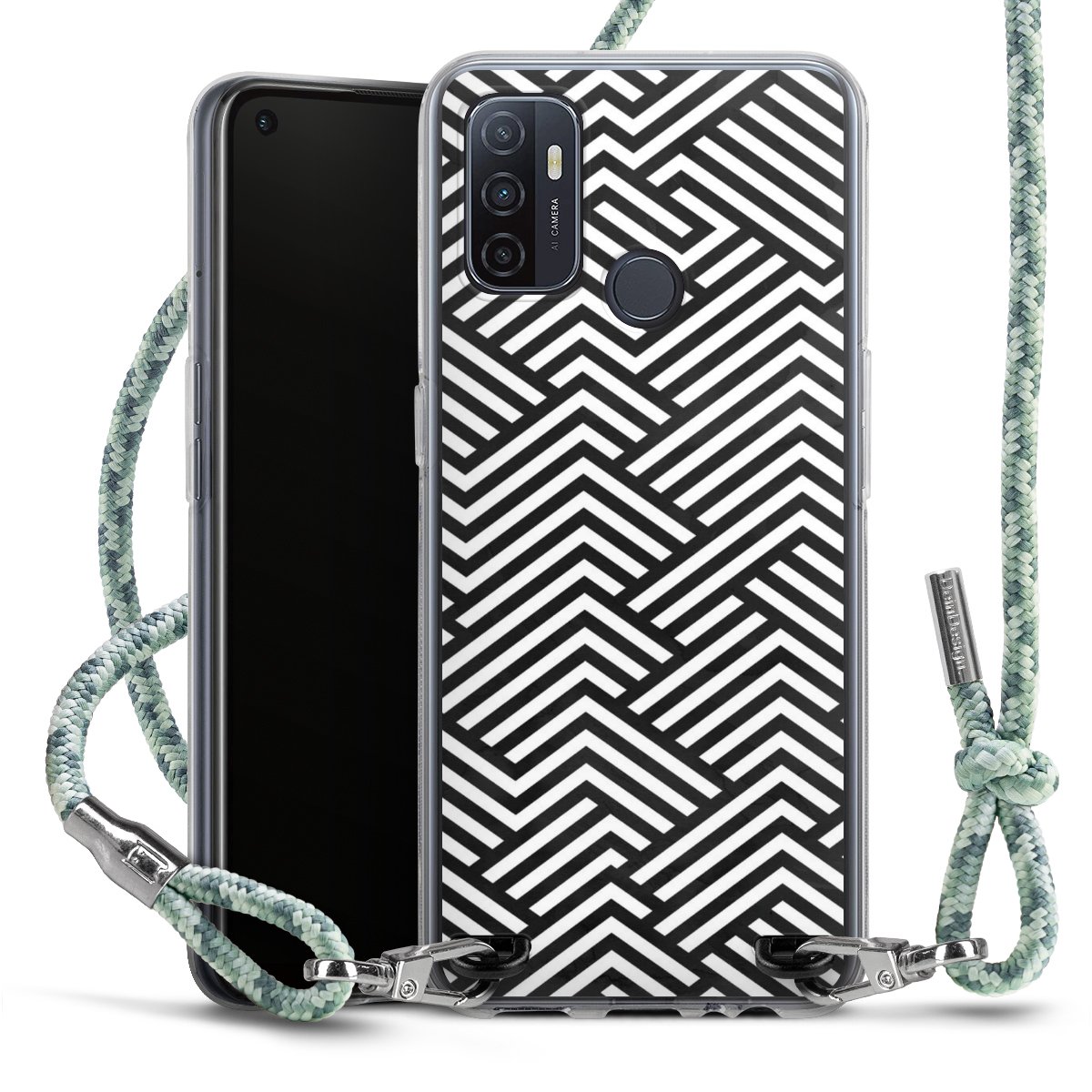 The flexible case is made from a highquality TPU material (thermoplastic Polyurethan). Thanks to its longlasting and break resistant characterisitcs, the case is flexible yet consistent in form and has a great grip and feel. The textile strap made from Polyester gives a chic yet casual accent allowing you to carry your phone like a bag or necklace - a practical gadget perfect for your next adventure. The textile strap is about 1.70 meters long and the length can easily be adjusted through the knots. Our Carry Case is available in Colourful, Mint-Camouflage, Very-Berry, Sahara-Sand and Sparkling-Neon. The ends of the textile strap are covered with metallic end caps to protect them against fraying.