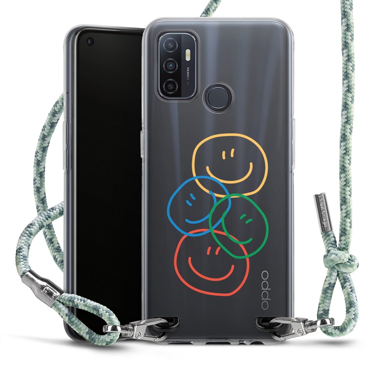 The flexible case is made from a highquality TPU material (thermoplastic Polyurethan). Thanks to its longlasting and break resistant characterisitcs, the case is flexible yet consistent in form and has a great grip and feel. The textile strap made from Polyester gives a chic yet casual accent allowing you to carry your phone like a bag or necklace - a practical gadget perfect for your next adventure. The textile strap is about 1.70 meters long and the length can easily be adjusted through the knots. Our Carry Case is available in Colourful, Mint-Camouflage, Very-Berry, Sahara-Sand and Sparkling-Neon. The ends of the textile strap are covered with metallic end caps to protect them against fraying.