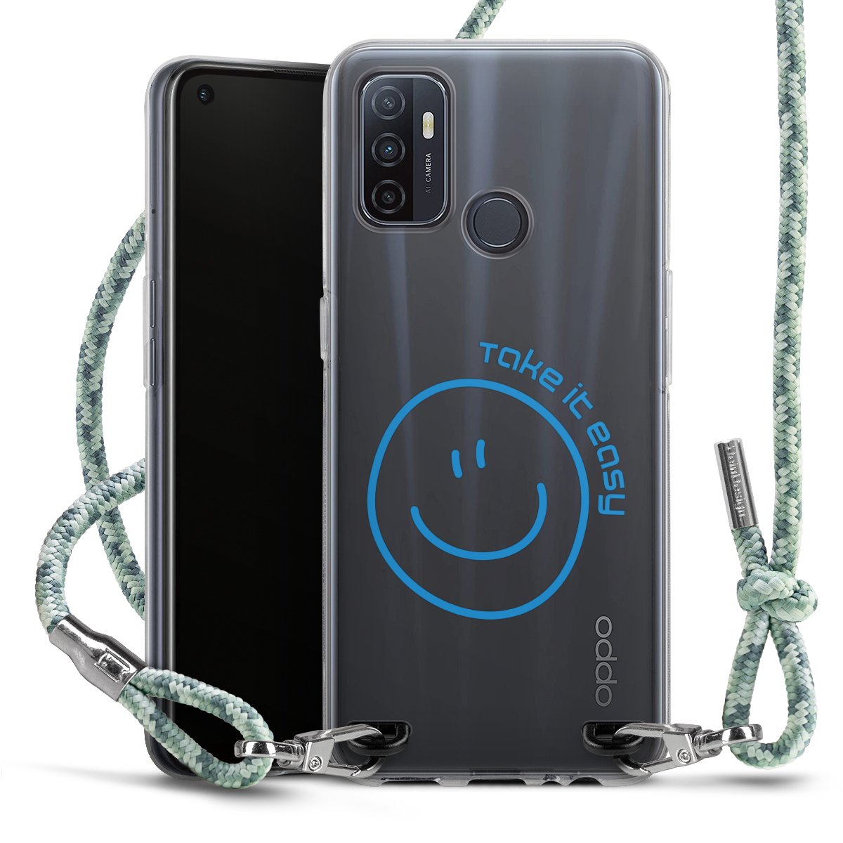 The flexible case is made from a highquality TPU material (thermoplastic Polyurethan). Thanks to its longlasting and break resistant characterisitcs, the case is flexible yet consistent in form and has a great grip and feel. The textile strap made from Polyester gives a chic yet casual accent allowing you to carry your phone like a bag or necklace - a practical gadget perfect for your next adventure. The textile strap is about 1.70 meters long and the length can easily be adjusted through the knots. Our Carry Case is available in Colourful, Mint-Camouflage, Very-Berry, Sahara-Sand and Sparkling-Neon. The ends of the textile strap are covered with metallic end caps to protect them against fraying.