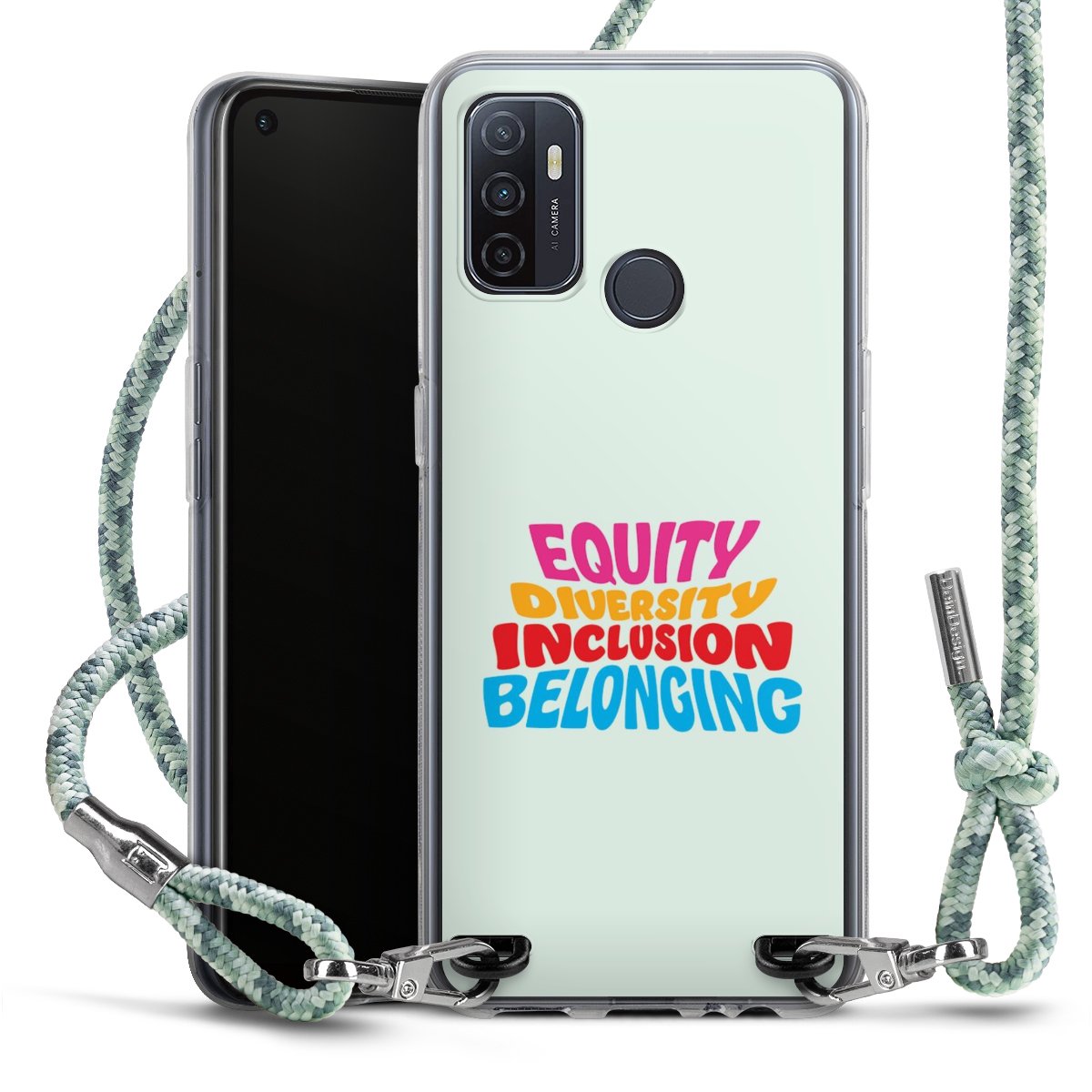 The flexible case is made from a highquality TPU material (thermoplastic Polyurethan). Thanks to its longlasting and break resistant characterisitcs, the case is flexible yet consistent in form and has a great grip and feel. The textile strap made from Polyester gives a chic yet casual accent allowing you to carry your phone like a bag or necklace - a practical gadget perfect for your next adventure. The textile strap is about 1.70 meters long and the length can easily be adjusted through the knots. Our Carry Case is available in Colourful, Mint-Camouflage, Very-Berry, Sahara-Sand and Sparkling-Neon. The ends of the textile strap are covered with metallic end caps to protect them against fraying.