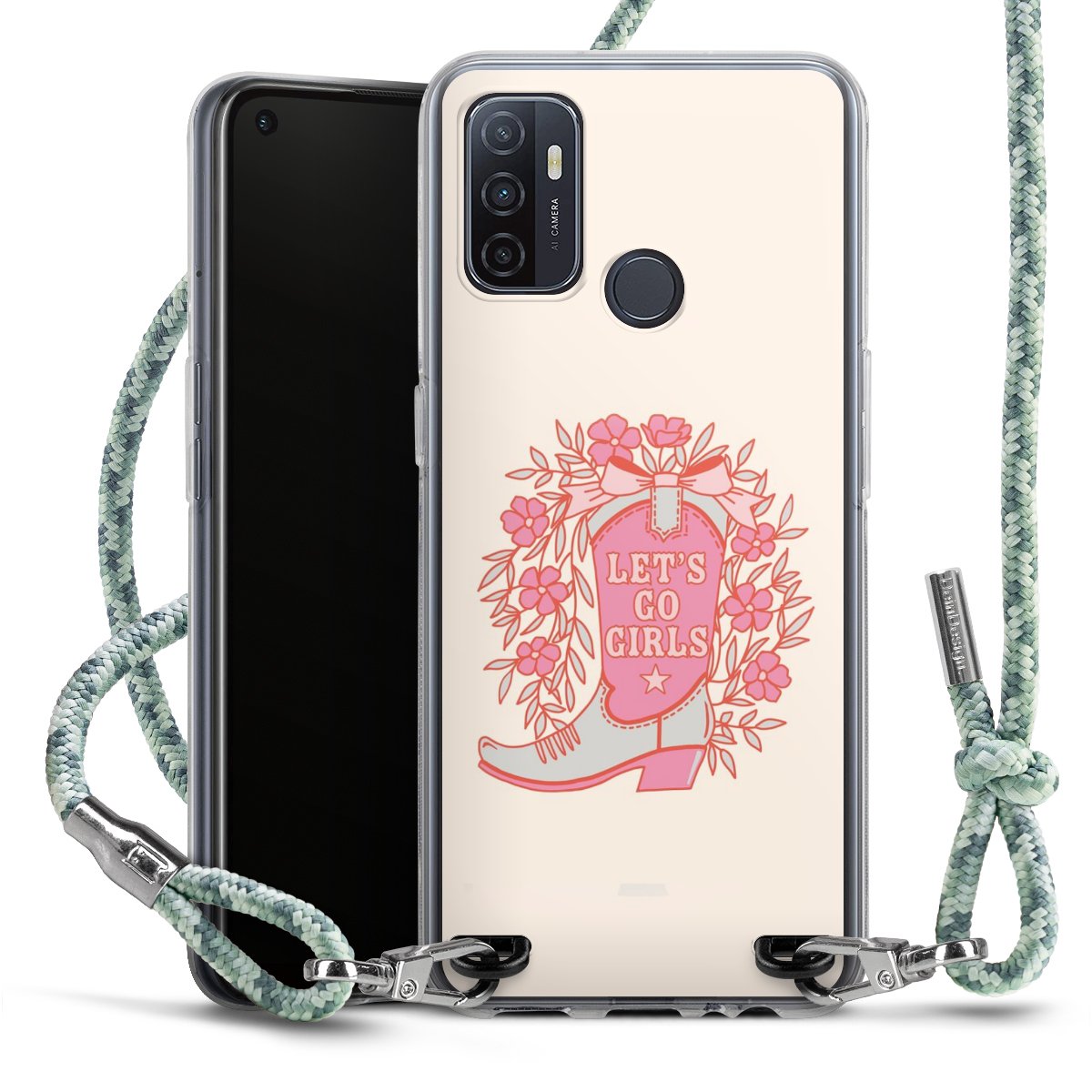 The flexible case is made from a highquality TPU material (thermoplastic Polyurethan). Thanks to its longlasting and break resistant characterisitcs, the case is flexible yet consistent in form and has a great grip and feel. The textile strap made from Polyester gives a chic yet casual accent allowing you to carry your phone like a bag or necklace - a practical gadget perfect for your next adventure. The textile strap is about 1.70 meters long and the length can easily be adjusted through the knots. Our Carry Case is available in Colourful, Mint-Camouflage, Very-Berry, Sahara-Sand and Sparkling-Neon. The ends of the textile strap are covered with metallic end caps to protect them against fraying.