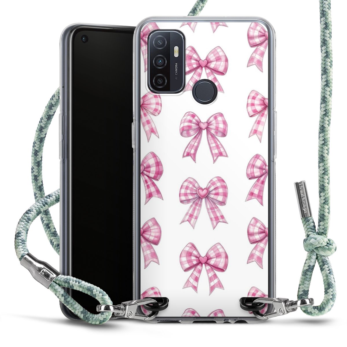 The flexible case is made from a highquality TPU material (thermoplastic Polyurethan). Thanks to its longlasting and break resistant characterisitcs, the case is flexible yet consistent in form and has a great grip and feel. The textile strap made from Polyester gives a chic yet casual accent allowing you to carry your phone like a bag or necklace - a practical gadget perfect for your next adventure. The textile strap is about 1.70 meters long and the length can easily be adjusted through the knots. Our Carry Case is available in Colourful, Mint-Camouflage, Very-Berry, Sahara-Sand and Sparkling-Neon. The ends of the textile strap are covered with metallic end caps to protect them against fraying.