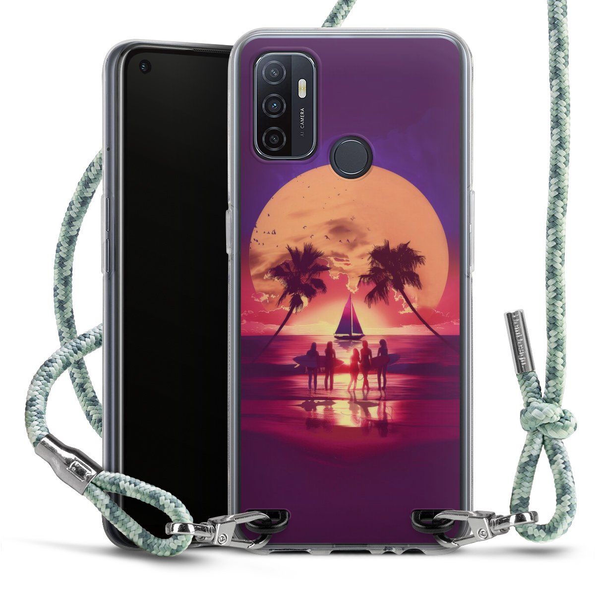 The flexible case is made from a highquality TPU material (thermoplastic Polyurethan). Thanks to its longlasting and break resistant characterisitcs, the case is flexible yet consistent in form and has a great grip and feel. The textile strap made from Polyester gives a chic yet casual accent allowing you to carry your phone like a bag or necklace - a practical gadget perfect for your next adventure. The textile strap is about 1.70 meters long and the length can easily be adjusted through the knots. Our Carry Case is available in Colourful, Mint-Camouflage, Very-Berry, Sahara-Sand and Sparkling-Neon. The ends of the textile strap are covered with metallic end caps to protect them against fraying.