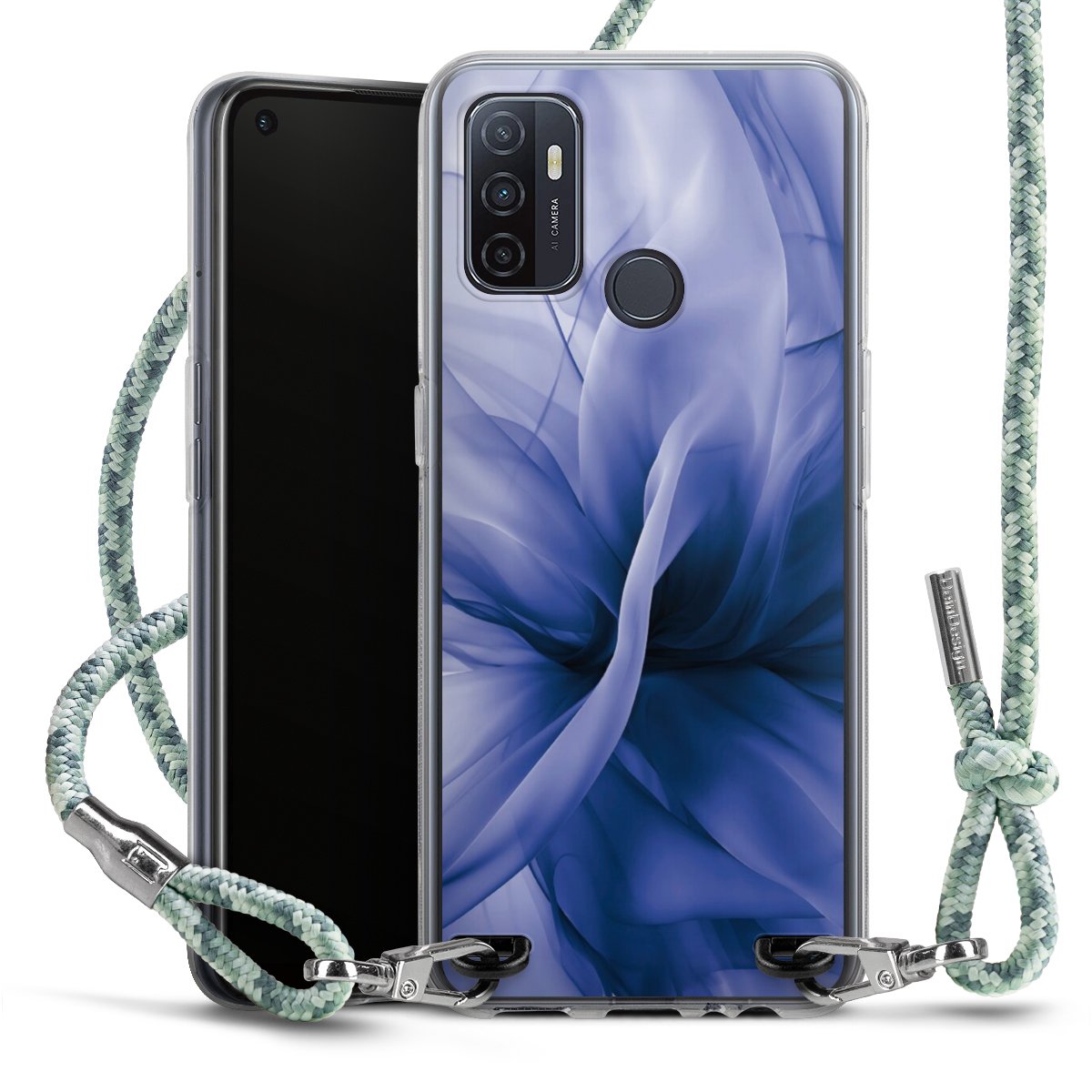 The flexible case is made from a highquality TPU material (thermoplastic Polyurethan). Thanks to its longlasting and break resistant characterisitcs, the case is flexible yet consistent in form and has a great grip and feel. The textile strap made from Polyester gives a chic yet casual accent allowing you to carry your phone like a bag or necklace - a practical gadget perfect for your next adventure. The textile strap is about 1.70 meters long and the length can easily be adjusted through the knots. Our Carry Case is available in Colourful, Mint-Camouflage, Very-Berry, Sahara-Sand and Sparkling-Neon. The ends of the textile strap are covered with metallic end caps to protect them against fraying.