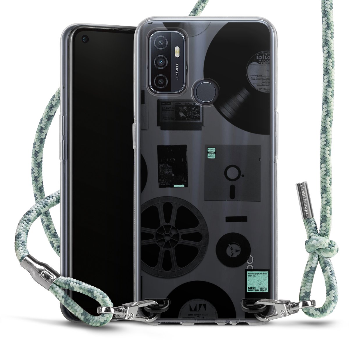 The flexible case is made from a highquality TPU material (thermoplastic Polyurethan). Thanks to its longlasting and break resistant characterisitcs, the case is flexible yet consistent in form and has a great grip and feel. The textile strap made from Polyester gives a chic yet casual accent allowing you to carry your phone like a bag or necklace - a practical gadget perfect for your next adventure. The textile strap is about 1.70 meters long and the length can easily be adjusted through the knots. Our Carry Case is available in Colourful, Mint-Camouflage, Very-Berry, Sahara-Sand and Sparkling-Neon. The ends of the textile strap are covered with metallic end caps to protect them against fraying.
