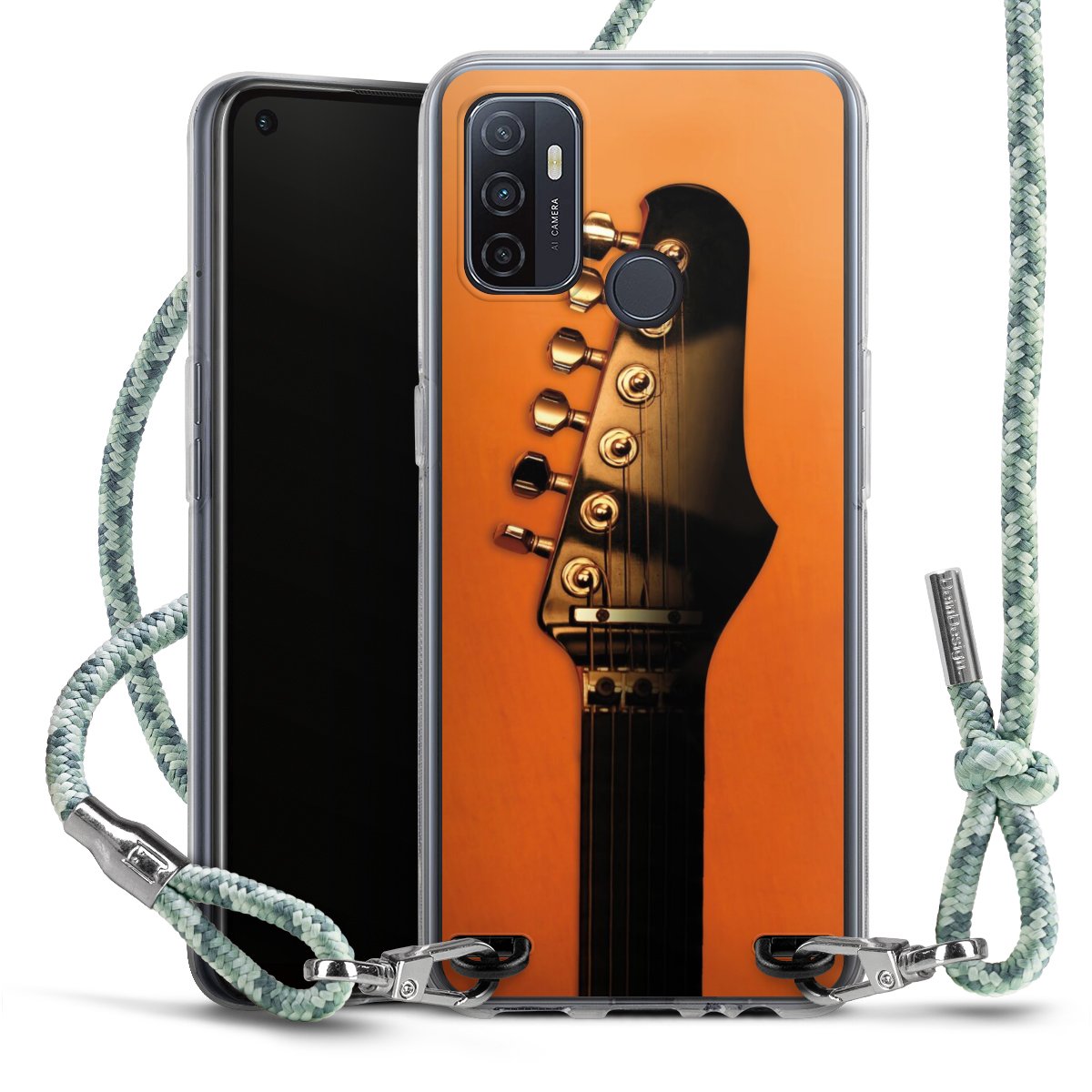 The flexible case is made from a highquality TPU material (thermoplastic Polyurethan). Thanks to its longlasting and break resistant characterisitcs, the case is flexible yet consistent in form and has a great grip and feel. The textile strap made from Polyester gives a chic yet casual accent allowing you to carry your phone like a bag or necklace - a practical gadget perfect for your next adventure. The textile strap is about 1.70 meters long and the length can easily be adjusted through the knots. Our Carry Case is available in Colourful, Mint-Camouflage, Very-Berry, Sahara-Sand and Sparkling-Neon. The ends of the textile strap are covered with metallic end caps to protect them against fraying.
