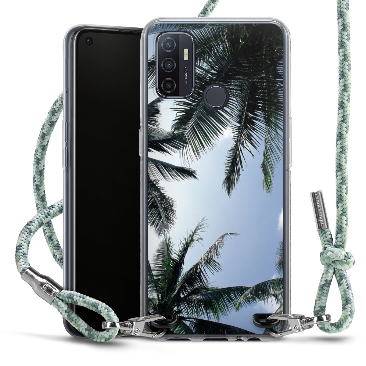 The flexible case is made from a highquality TPU material (thermoplastic Polyurethan). Thanks to its longlasting and break resistant characterisitcs, the case is flexible yet consistent in form and has a great grip and feel. The textile strap made from Polyester gives a chic yet casual accent allowing you to carry your phone like a bag or necklace - a practical gadget perfect for your next adventure. The textile strap is about 1.70 meters long and the length can easily be adjusted through the knots. Our Carry Case is available in Colourful, Mint-Camouflage, Very-Berry, Sahara-Sand and Sparkling-Neon. The ends of the textile strap are covered with metallic end caps to protect them against fraying.