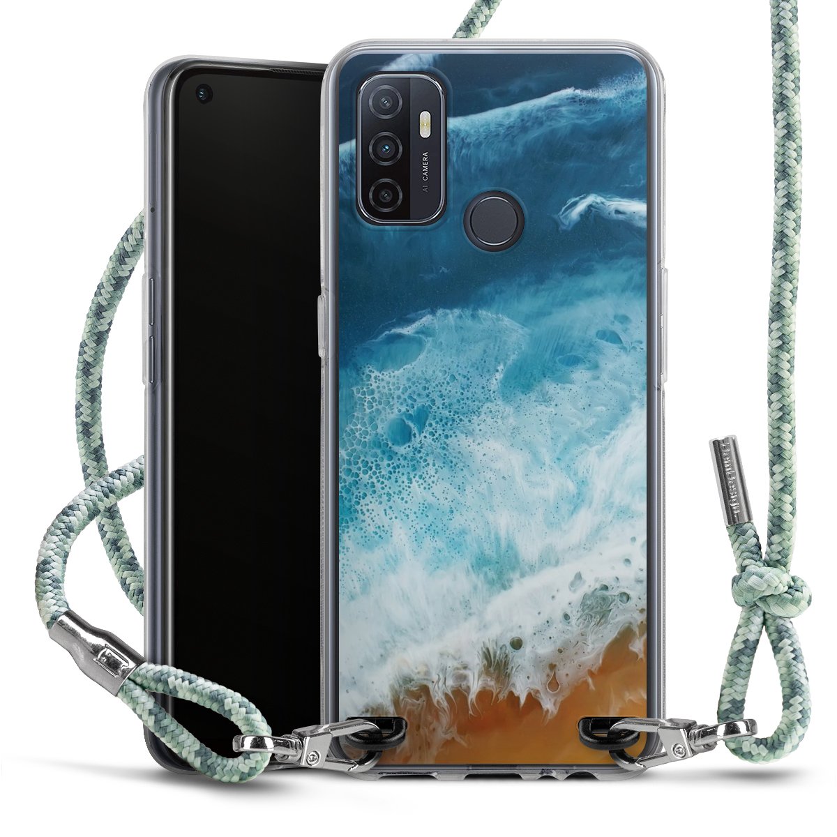 The flexible case is made from a highquality TPU material (thermoplastic Polyurethan). Thanks to its longlasting and break resistant characterisitcs, the case is flexible yet consistent in form and has a great grip and feel. The textile strap made from Polyester gives a chic yet casual accent allowing you to carry your phone like a bag or necklace - a practical gadget perfect for your next adventure. The textile strap is about 1.70 meters long and the length can easily be adjusted through the knots. Our Carry Case is available in Colourful, Mint-Camouflage, Very-Berry, Sahara-Sand and Sparkling-Neon. The ends of the textile strap are covered with metallic end caps to protect them against fraying.