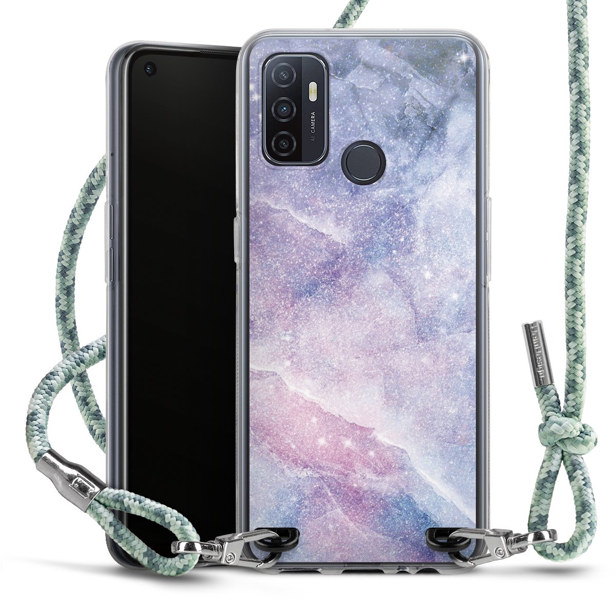 The flexible case is made from a highquality TPU material (thermoplastic Polyurethan). Thanks to its longlasting and break resistant characterisitcs, the case is flexible yet consistent in form and has a great grip and feel. The textile strap made from Polyester gives a chic yet casual accent allowing you to carry your phone like a bag or necklace - a practical gadget perfect for your next adventure. The textile strap is about 1.70 meters long and the length can easily be adjusted through the knots. Our Carry Case is available in Colourful, Mint-Camouflage, Very-Berry, Sahara-Sand and Sparkling-Neon. The ends of the textile strap are covered with metallic end caps to protect them against fraying.