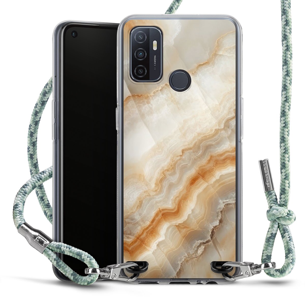 The flexible case is made from a highquality TPU material (thermoplastic Polyurethan). Thanks to its longlasting and break resistant characterisitcs, the case is flexible yet consistent in form and has a great grip and feel. The textile strap made from Polyester gives a chic yet casual accent allowing you to carry your phone like a bag or necklace - a practical gadget perfect for your next adventure. The textile strap is about 1.70 meters long and the length can easily be adjusted through the knots. Our Carry Case is available in Colourful, Mint-Camouflage, Very-Berry, Sahara-Sand and Sparkling-Neon. The ends of the textile strap are covered with metallic end caps to protect them against fraying.