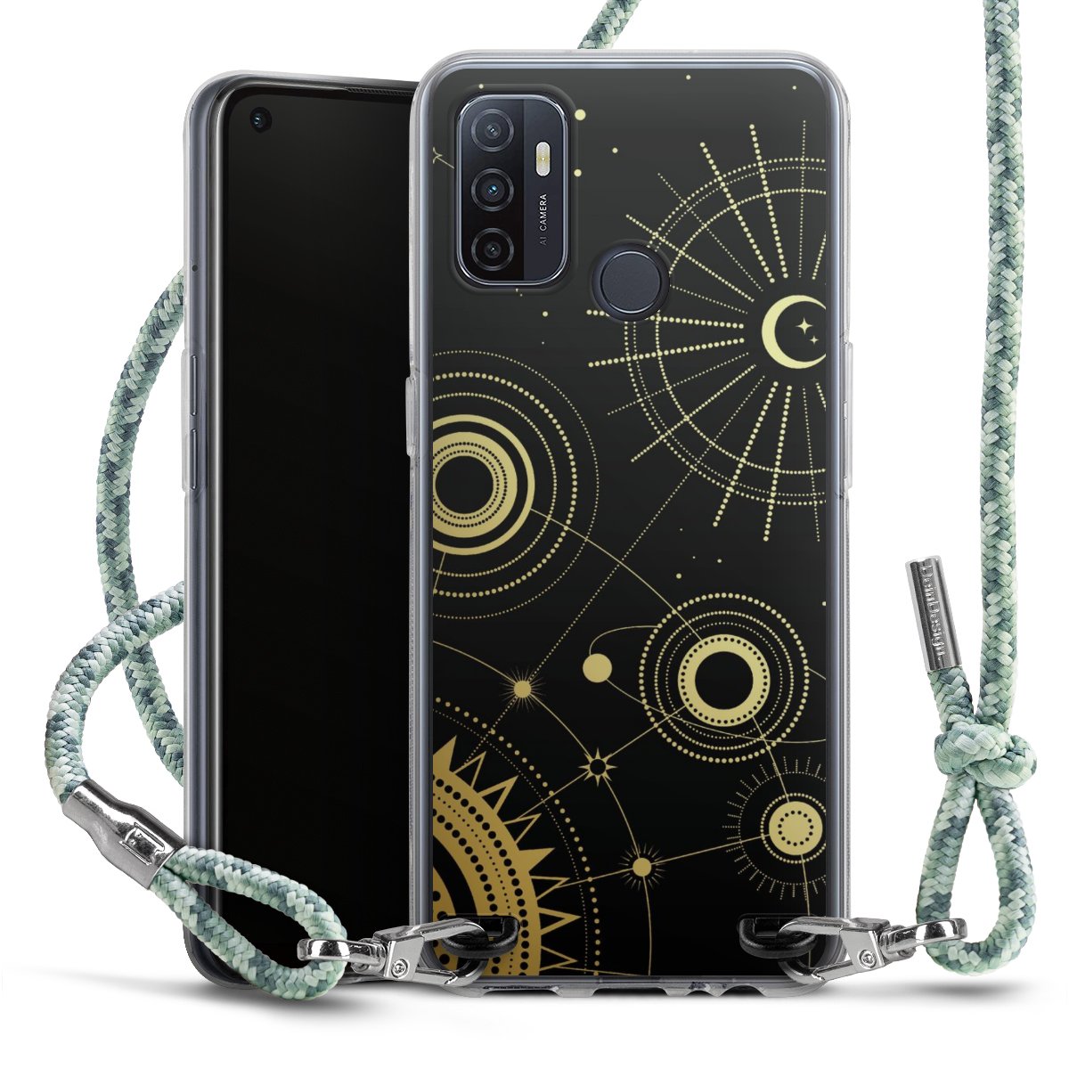 The flexible case is made from a highquality TPU material (thermoplastic Polyurethan). Thanks to its longlasting and break resistant characterisitcs, the case is flexible yet consistent in form and has a great grip and feel. The textile strap made from Polyester gives a chic yet casual accent allowing you to carry your phone like a bag or necklace - a practical gadget perfect for your next adventure. The textile strap is about 1.70 meters long and the length can easily be adjusted through the knots. Our Carry Case is available in Colourful, Mint-Camouflage, Very-Berry, Sahara-Sand and Sparkling-Neon. The ends of the textile strap are covered with metallic end caps to protect them against fraying.